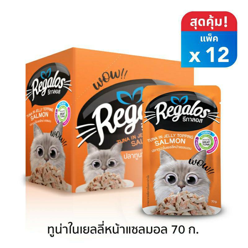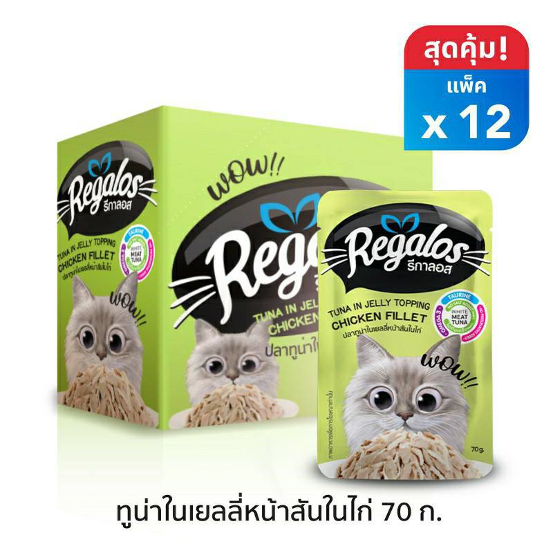 Regalos (ยกโหล 12 ซอง) อาหารเปียกแมวเกรดพรีเมียม ผลิตจากปลาเนื้อขาว 70g.
