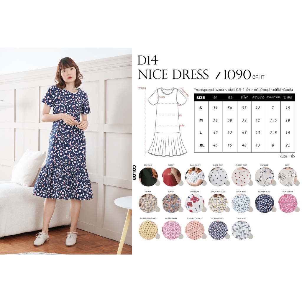 ล้างสต๊อคลดเหลือ 327.- (D14) Nice Dress - Poppies Blue