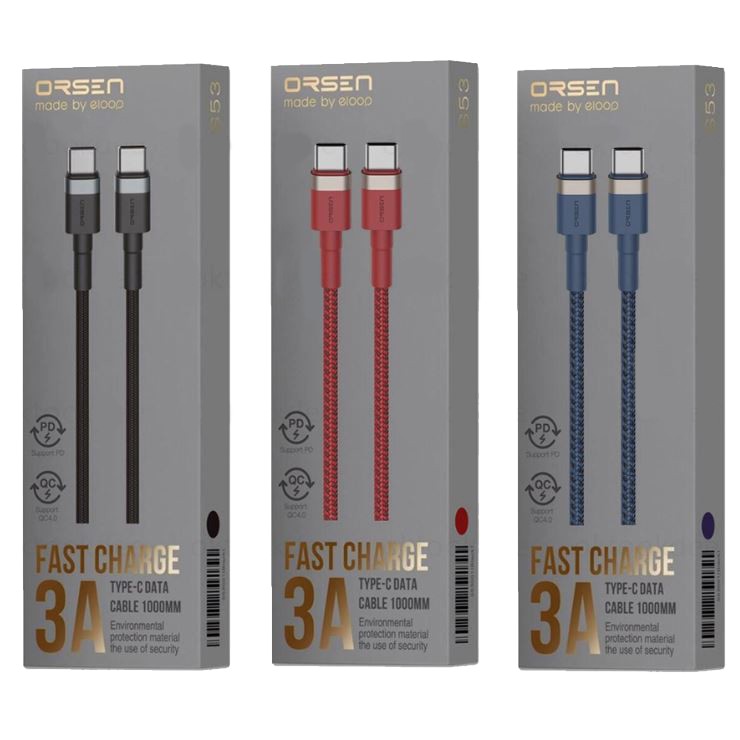 ORSEN by Eloop S53 สายชาร์จเร็ว USB Type-C to Type-C 3A รองรับการถ่ายโอนข้อมูล