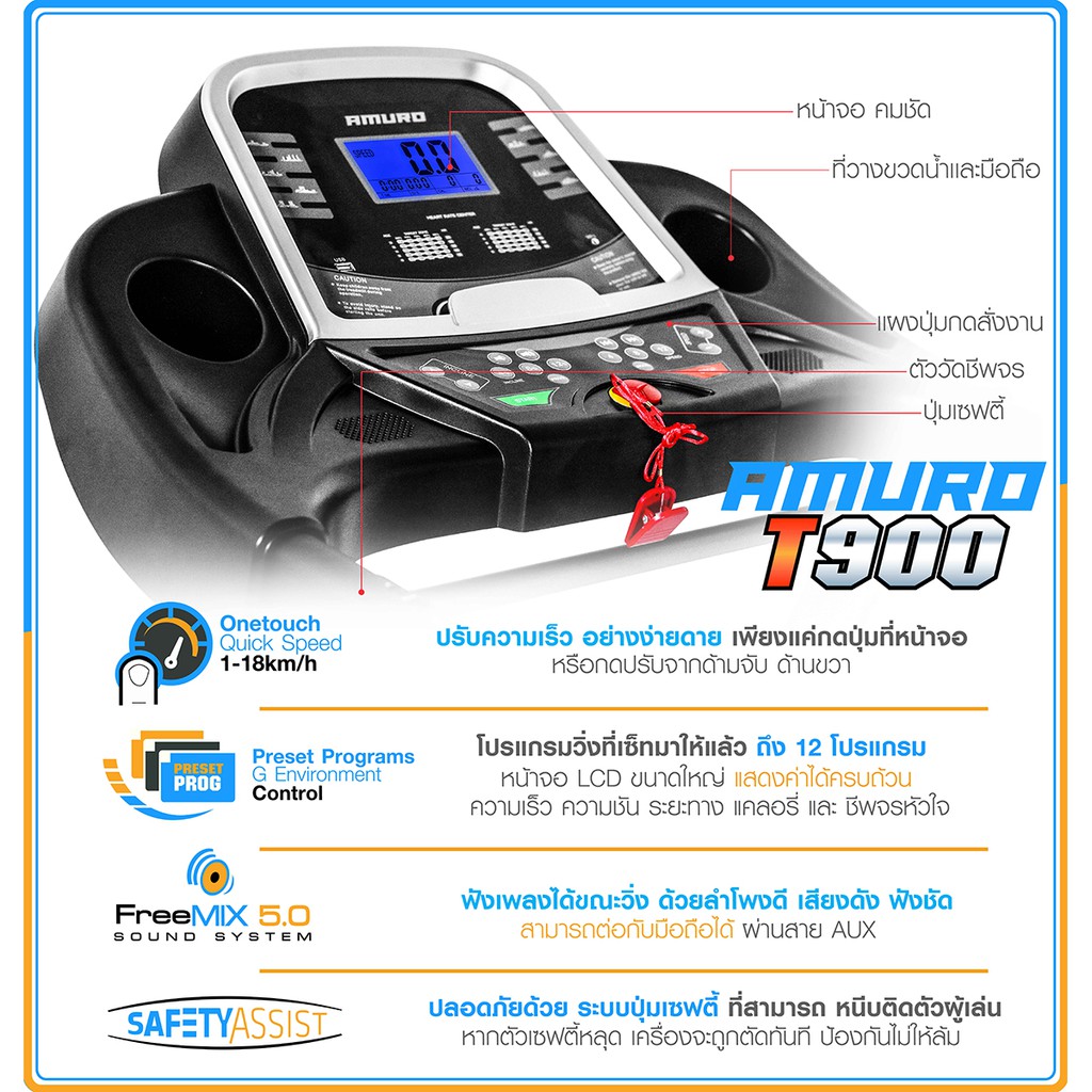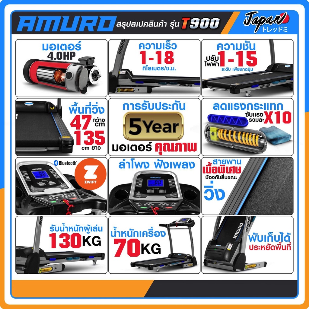 ลู่วิ่งไฟฟ้า T900 4.0HP เชื่อมต่อ ZWIFTได้ ปรับชันไฟฟ้า ลดแรงกระแทก 10จุด