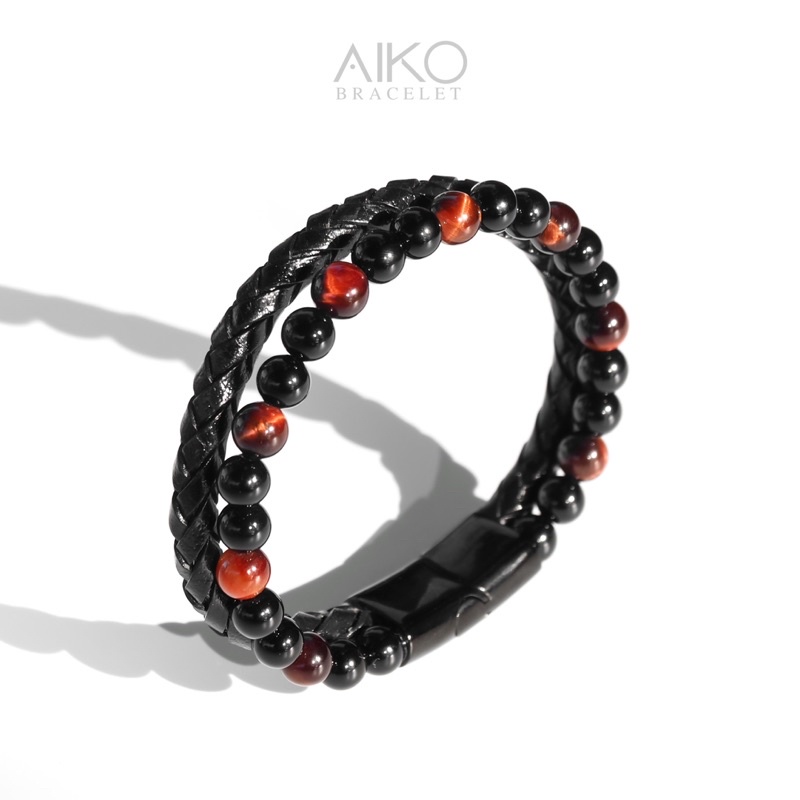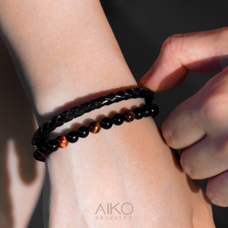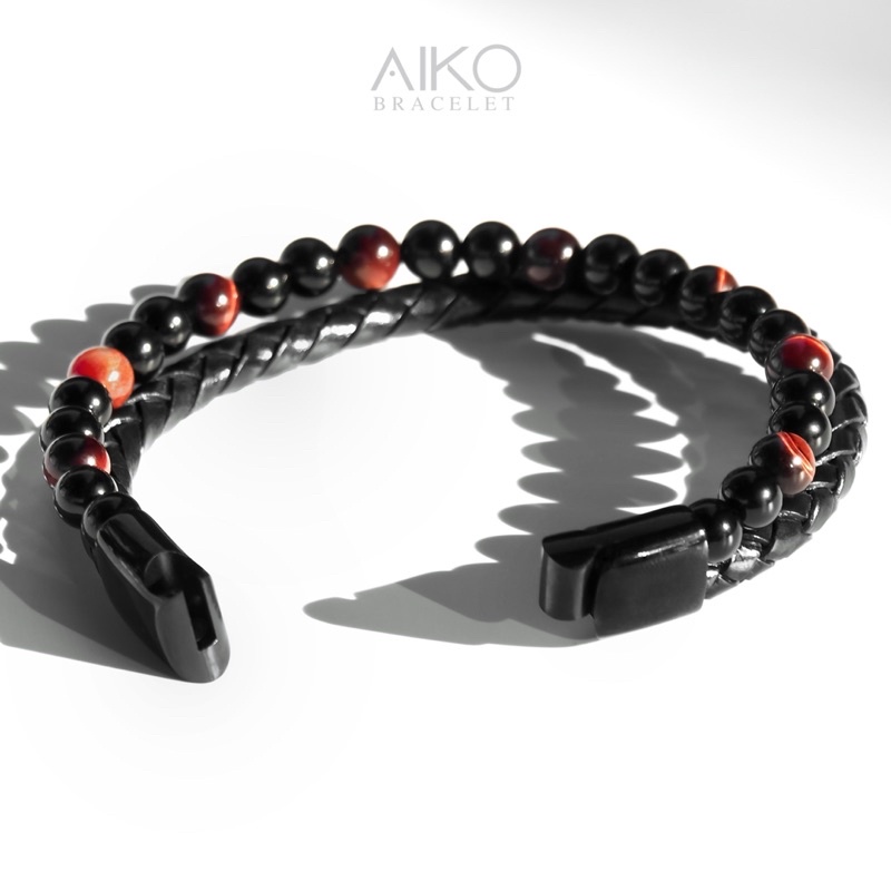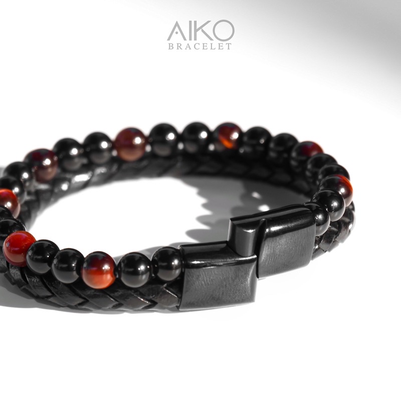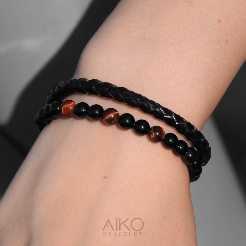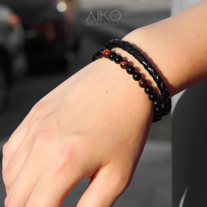The Kardos กำไลหินมิกซ์หนัง (Black Onyx/Red Tiger Eye)