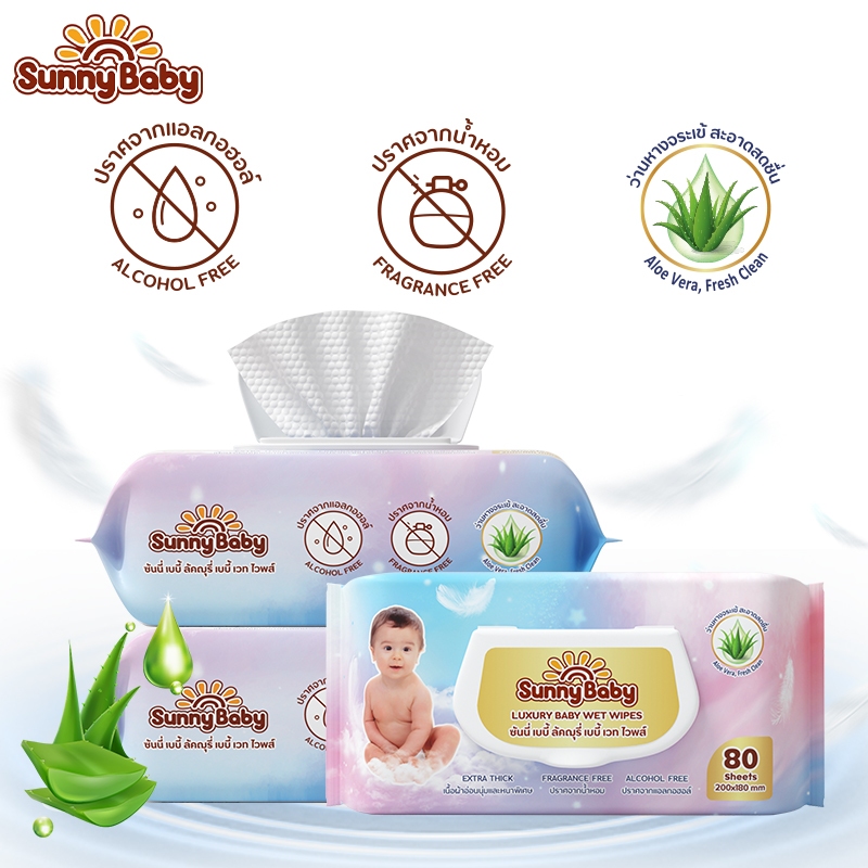 [1 แถม 1] Sunny Baby Wipes ซันนี่ เบบี้ ทิชชู่เปียก ทิชชู่เปียกเด็ก ห่อใหญ่ 25/80แผ่น