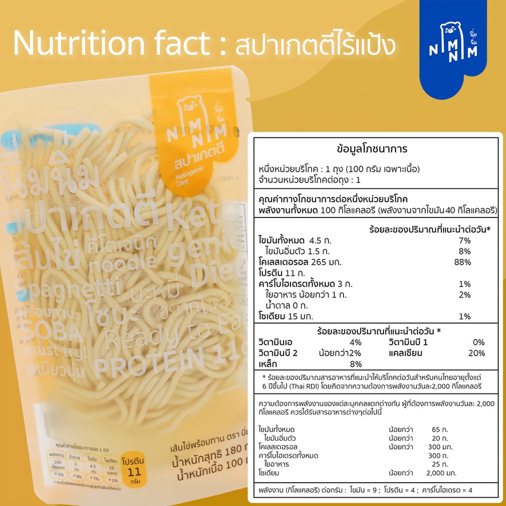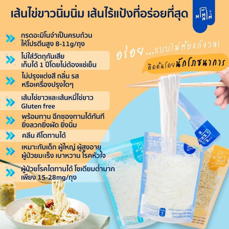 เส้นไข่ขาว เส้นหมี่ไข่ขาว สปาเก็ตตี้ไร้แป้ง สินค้าล๊อตใหม่ Nimnim ,eggg day คีโต ขนาด 100 กรัม