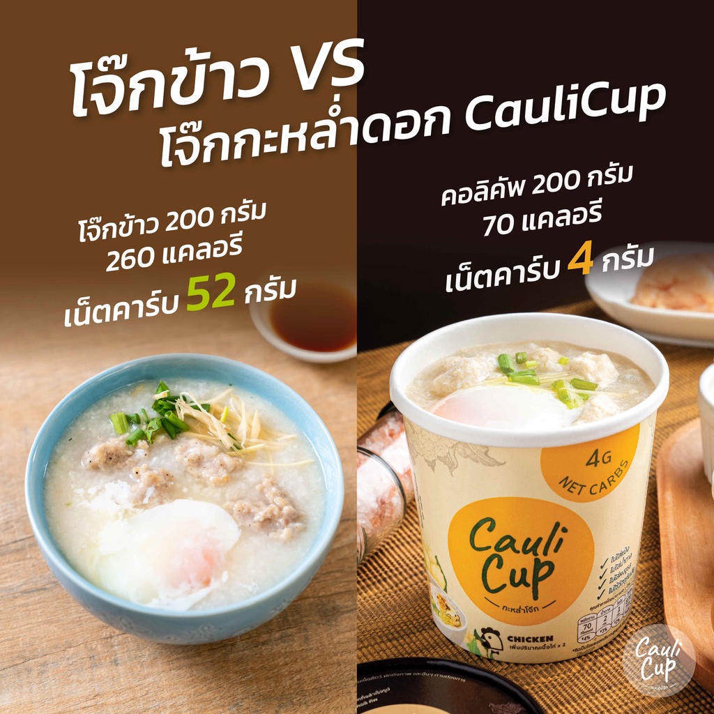 โจ๊กคีโต cauli cup กะหล่ำโจ๊ก โจ๊กไร้แป้ง keto friendly