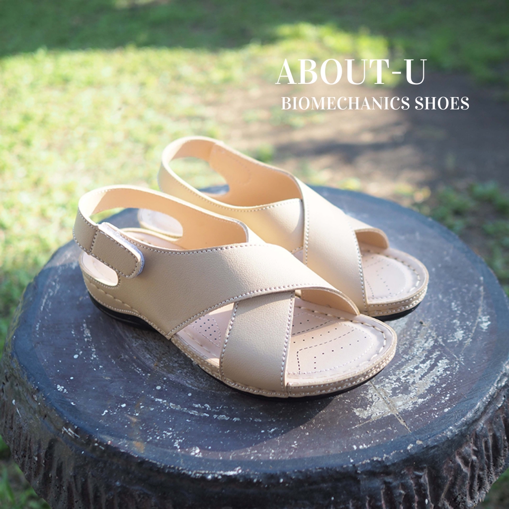 ABOUT-U รองเท้าเพื่อสุขภาพผู้หญิง รัดส้น ใส่สบาย น้ำหนักเบา เย็บรอบ ใช้ทน กันน้ำ กันลื่น แบบรัดส้นหน้าไขว้