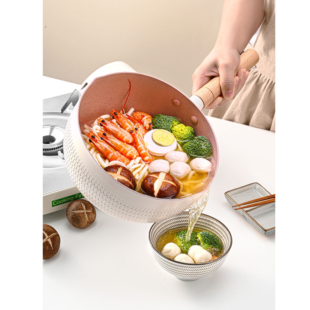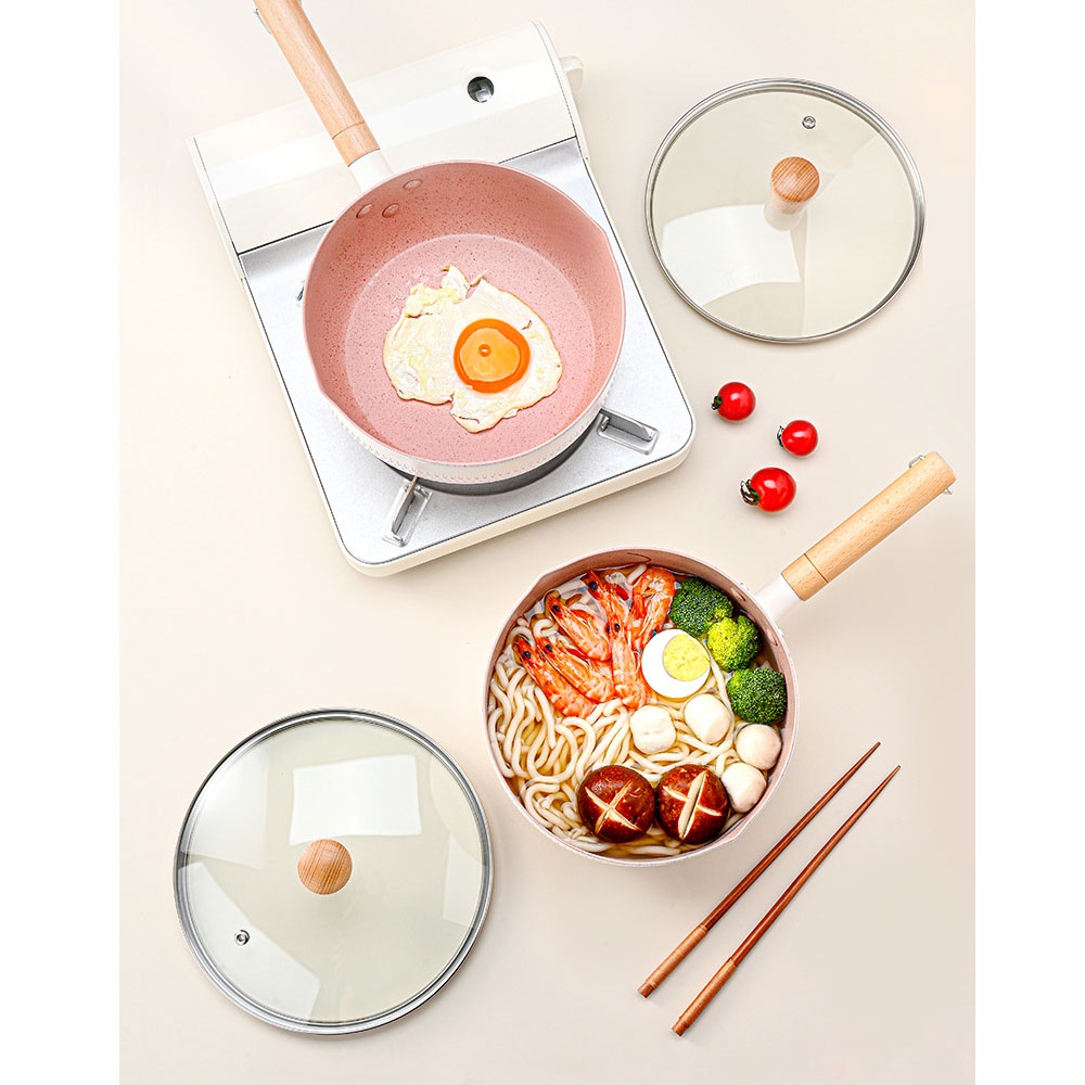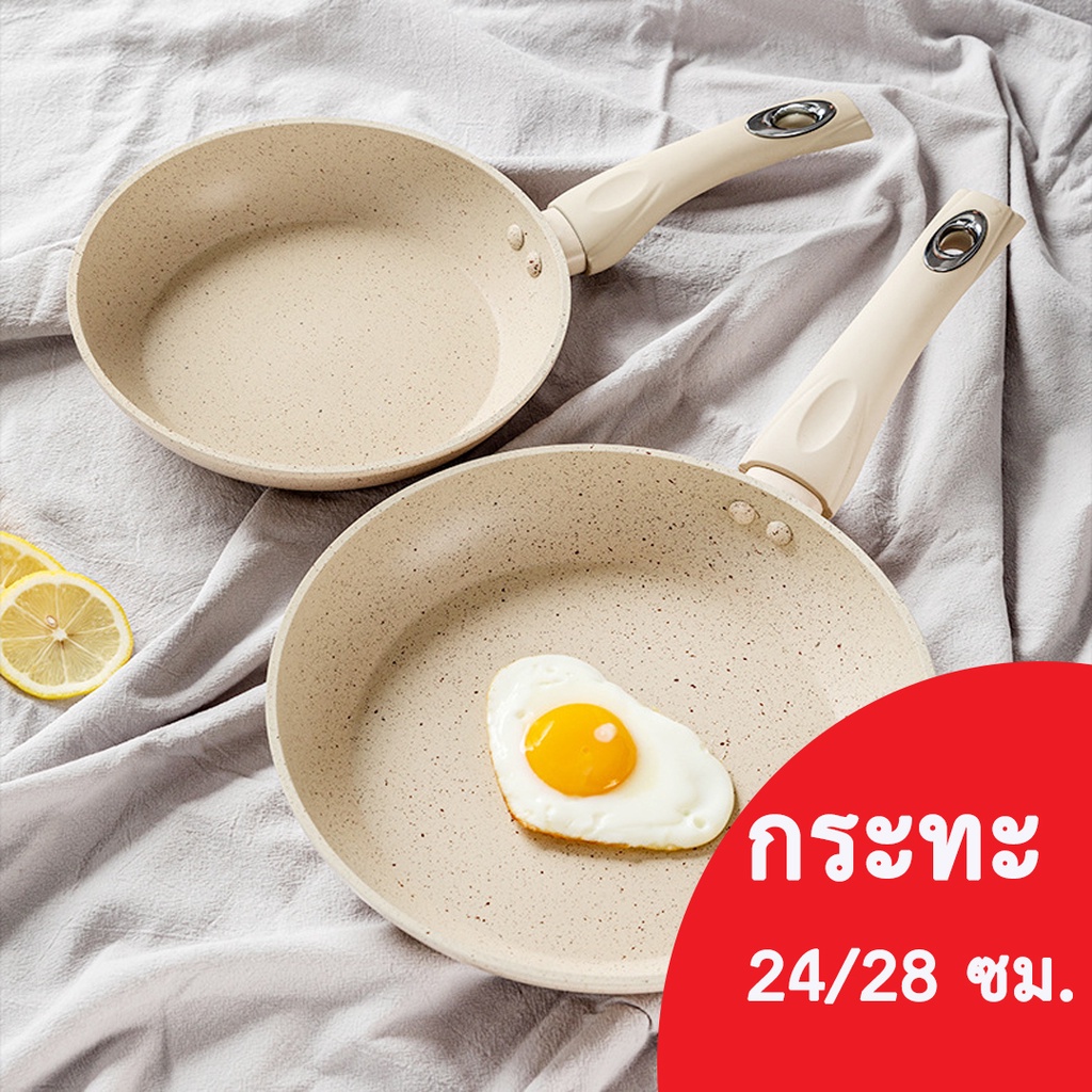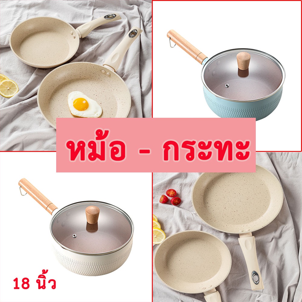 หม้อ กระทะเคลือบหินอ่อน non-stick ก้นแบน สำหรับเตาทุกประเภท หม้อต้ม หม้อต้มมาม่า กระทะ