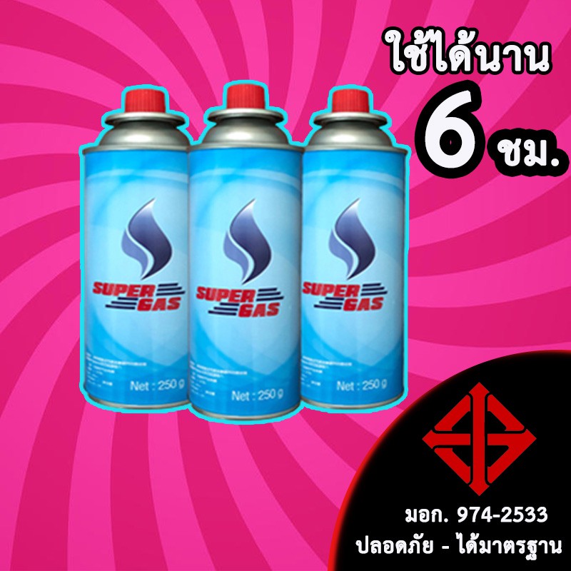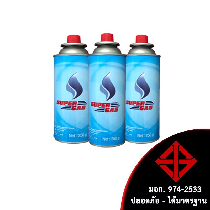 SUPER GAS แก๊สกระป๋อง ความจุก๊าซ 250 กรัม ใช้ได้ยาวนาน 6 ชั่วโมง(จำนวน3กระป๋อง) *** ได้รับมาตรฐาน มอก. ***