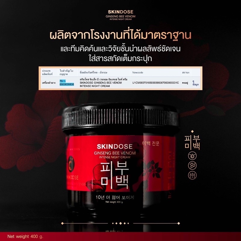 SKINDOSE ครีมโสมพิษผึ้งจักรพรรดิ โสมพิษผึ้ง แท้100% |ซื้อกับตัวแทนเท่านั้น| ครีมโสม จักรพรรดิ