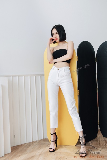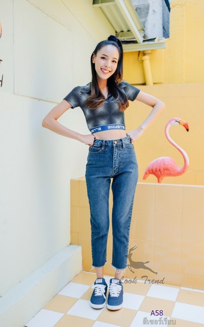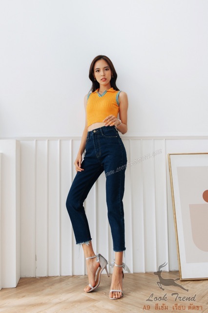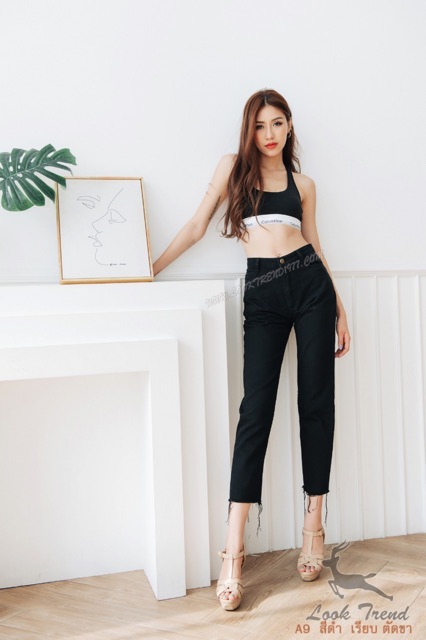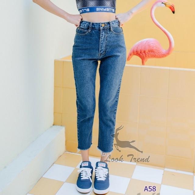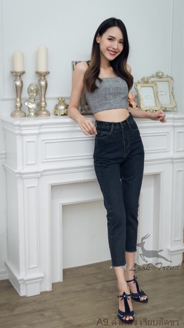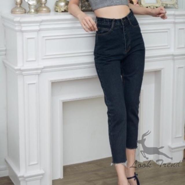 Cenetes 👖กางเกงยีนส์เอวสูงทรงบอย ❤️ผ้าไม่ยืด สีกลาง-ฟ้า-กรม-สีดำ แต่งขาดปลายขา ทรงกระบอกเล็ก แบรนด์ LOOKTREND