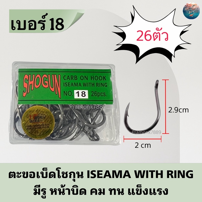 (ของแท้100%)ตัวเบ็ดตกปลา เบ็ดโชกุน SHOGUN No.2 - No.20 ตัวดำ มีรู หน้าบิด ตะขอเบ็ด เบ็ดกล่องสีเขียว ขอเบ็ดตกปลา ตาเบ็ด