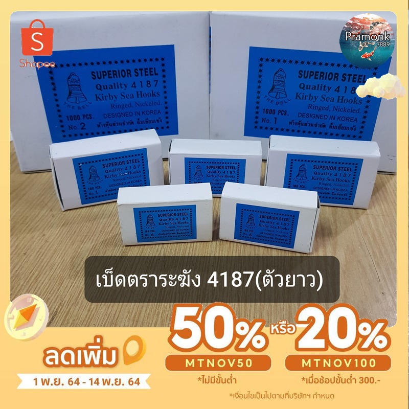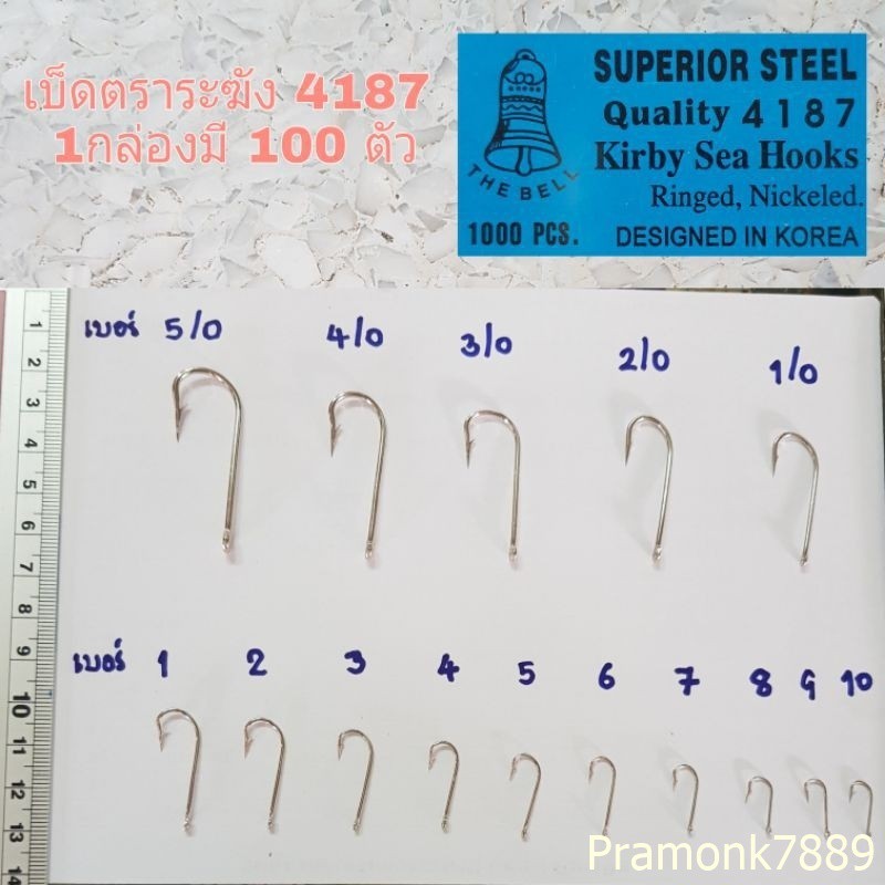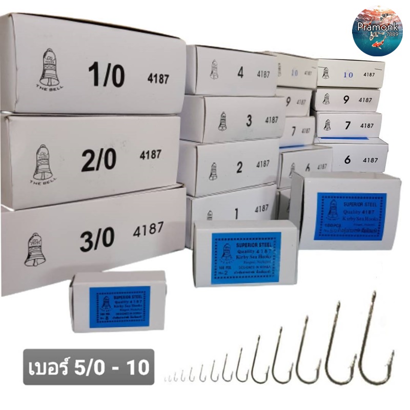 เบ็ดตราระฆัง 4187 เบ็ดยาว 1กล่องมี 100 ตัว No. 5/0 - No.12 ตัวเบ็ดตกปลา ขอเบ็ดตกปลา ตาเบ็ด ดวงเบ็ด ตะขอเบ็ด