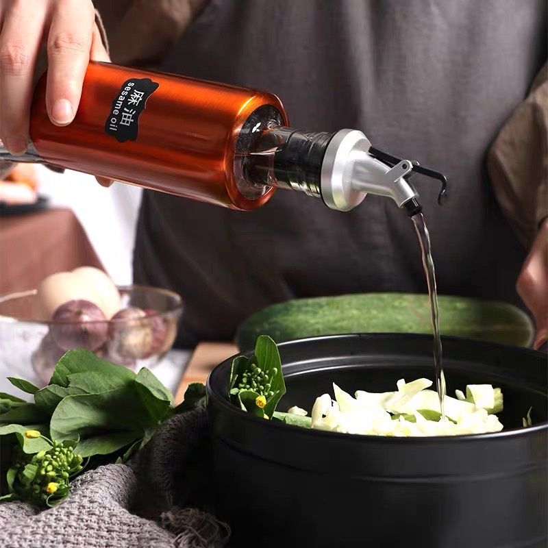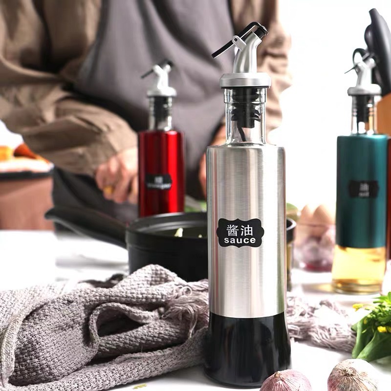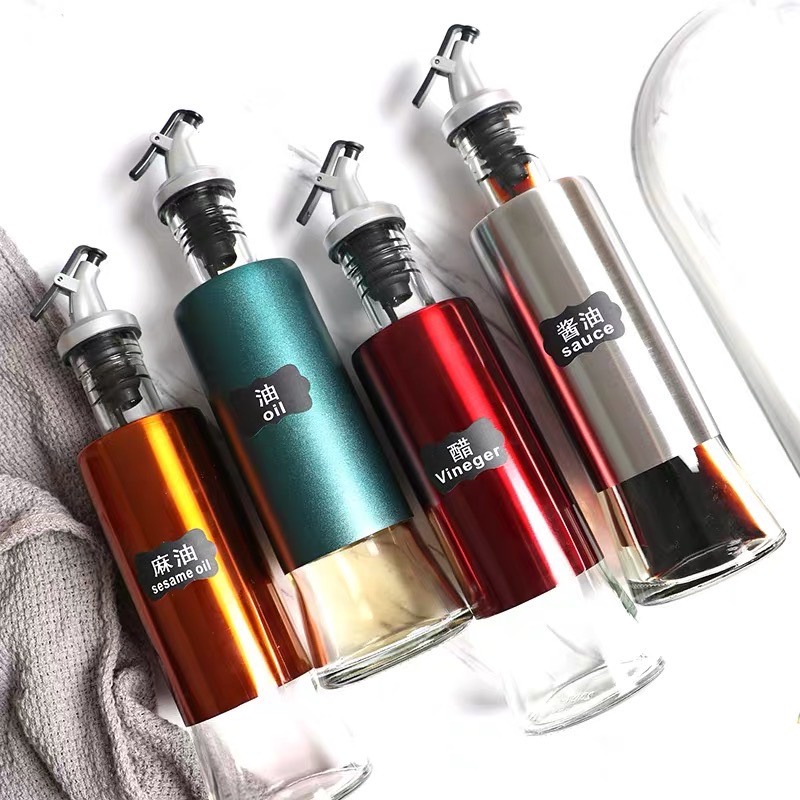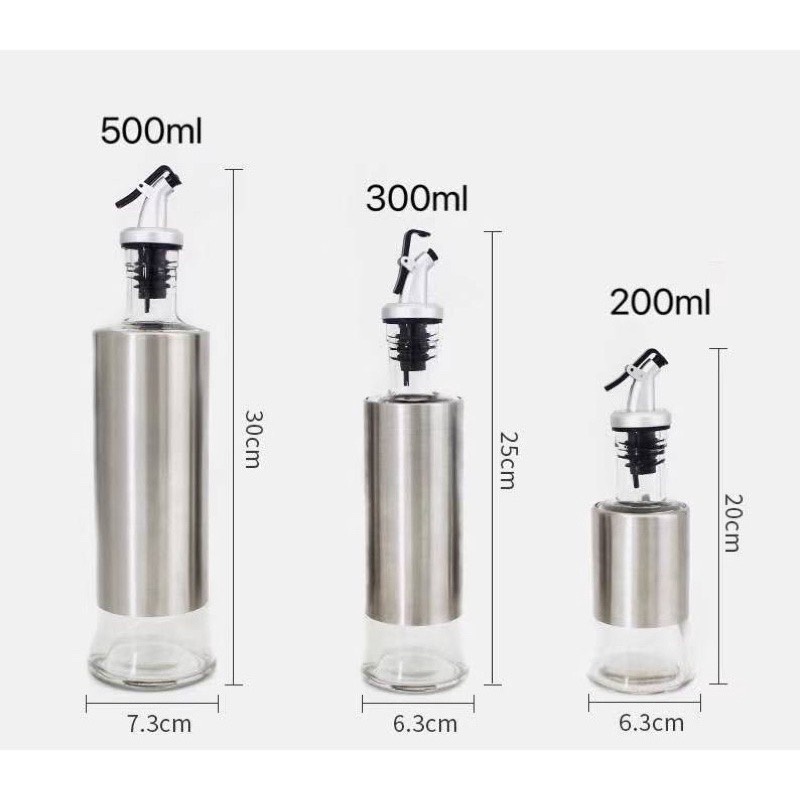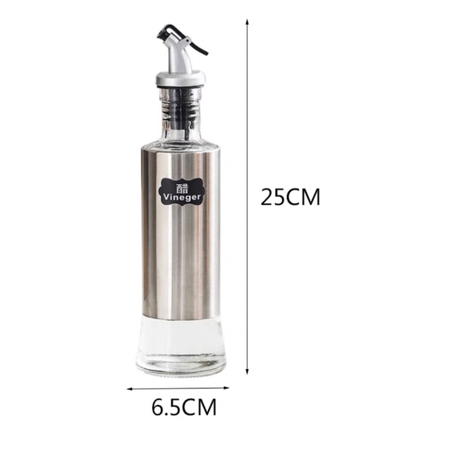 ขวดปรุงรส โถปรุงรส ขวดแก้วใสหุ้มสแตนเลส ขวดใส่น้ำมัน ขวดใส่ซอส น้ำส้มสายซู นำ้มันงา ขนาด 200ml 300ml 500ml