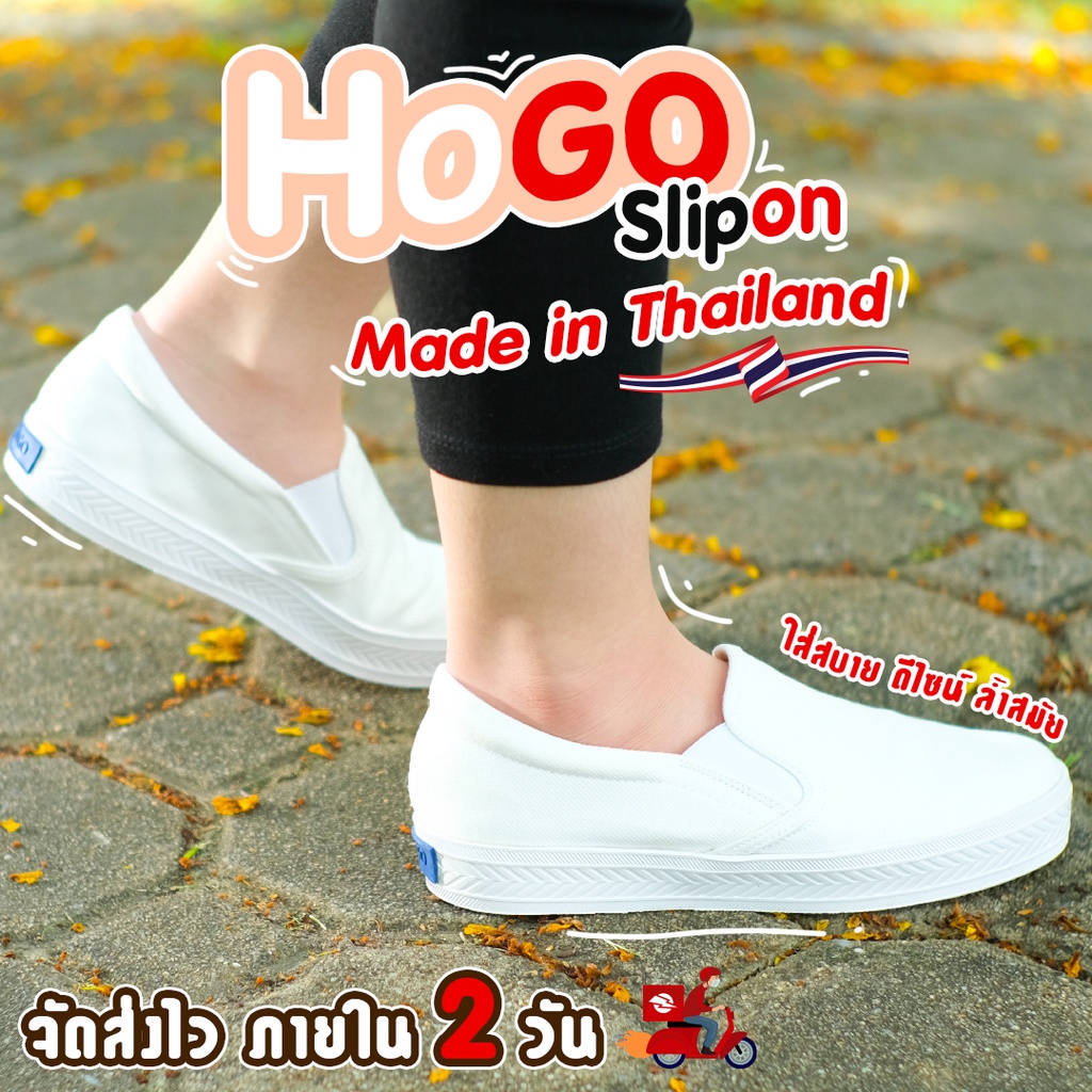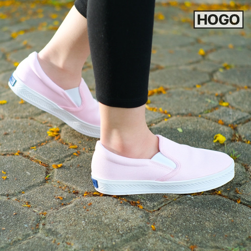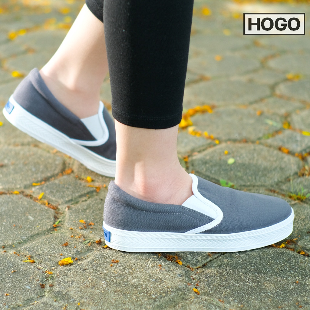 Hogo รองเท้าสลิปออน แบบสวม นุ่ม สวมใส่สบาย ไม่ต้องผูกเชือก ผ้าใบสีขาว รองเท้าผ้าใบผู้หญิง