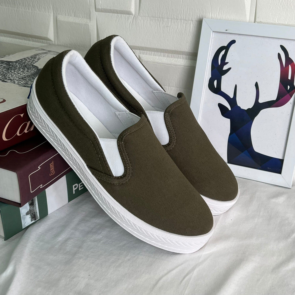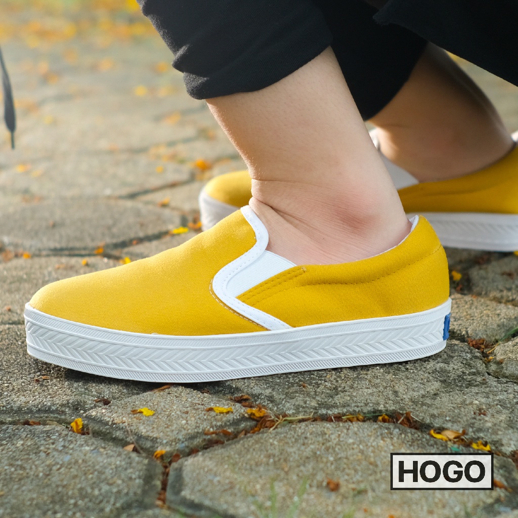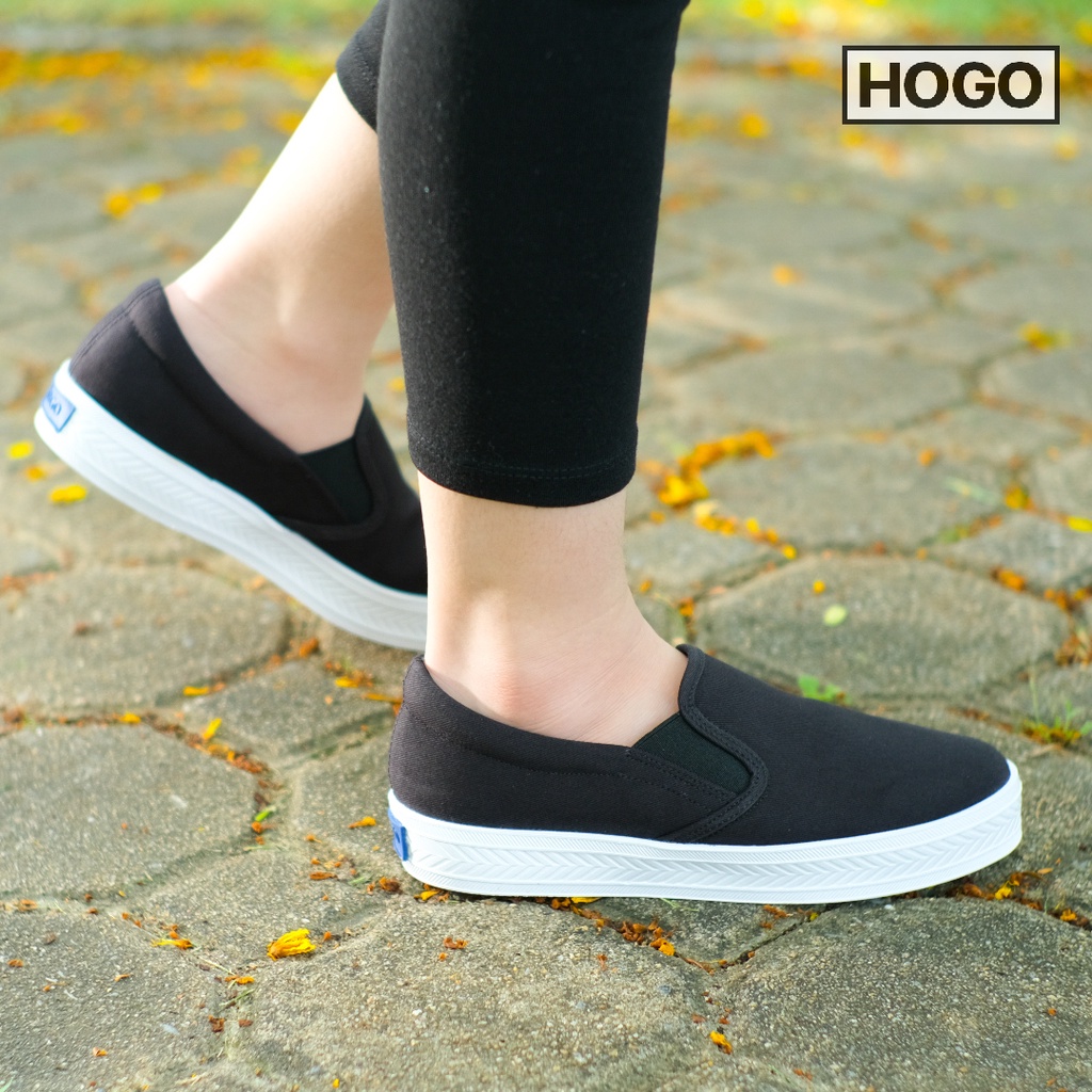 Hogo รองเท้าสลิปออน แบบสวม นุ่ม สวมใส่สบาย ไม่ต้องผูกเชือก ผ้าใบสีขาว รองเท้าผ้าใบผู้หญิง