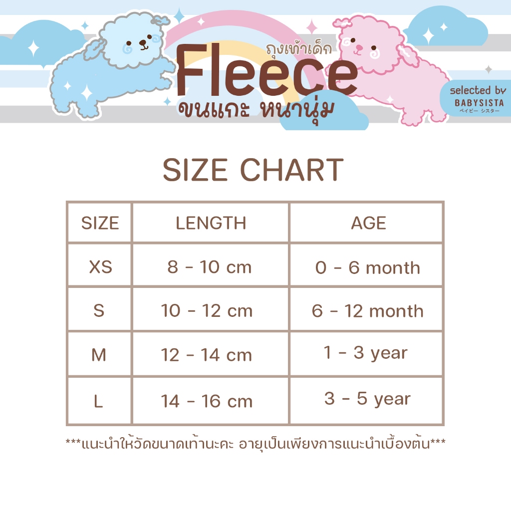 ถุงเท้าเด็กBabysista รุ่น Fleece ขนแกะ หนานุ่ม