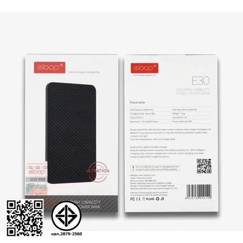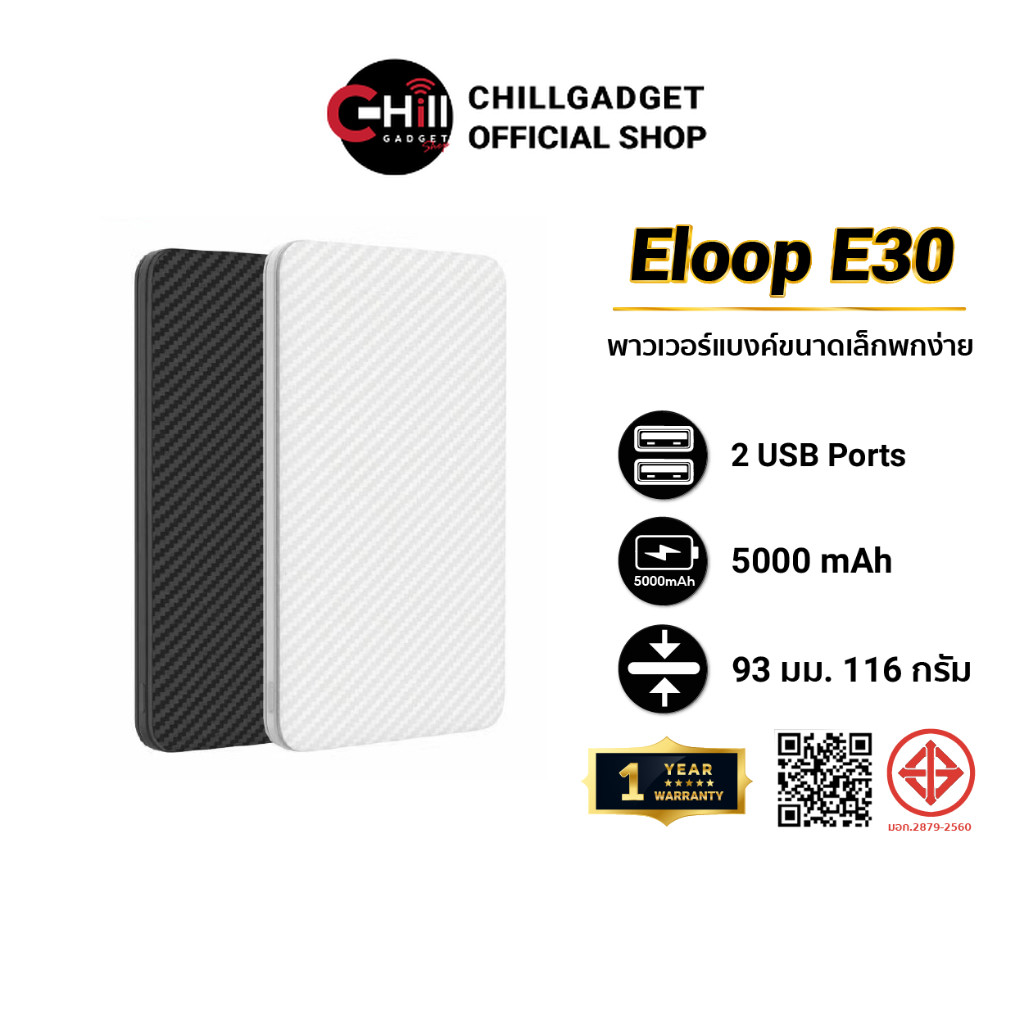 Orsen by Eloop E30 แบตสำรอง 5000mAh ชาร์จ 2.1A แบบบางเฉียบ เบา พกง่าย USB 2 ช่องชาร์จ