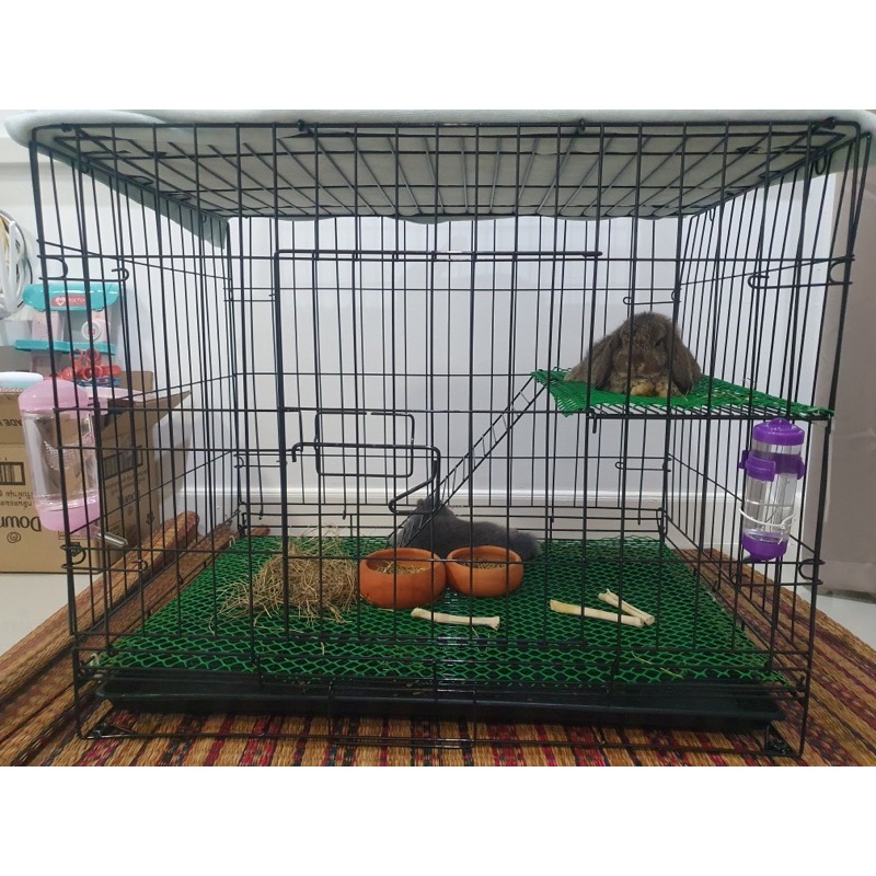🔥12.12 กรงแมวคอนโด2ชั้น กรงสัตว์เลี้ยง กรงกระต่าย กรงสุนัข No.2 พับได้ (มีชั้นลอยพร้อมบันได)(ขนาด 76 x 52 x 60 cm.)ขอ