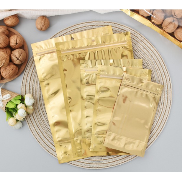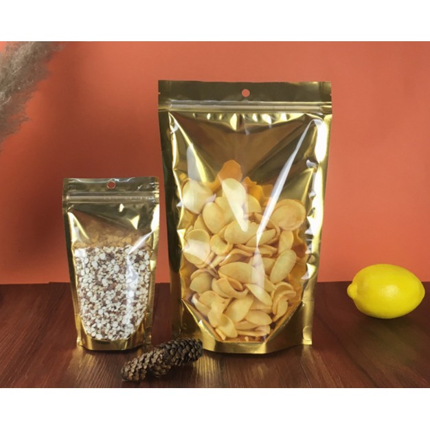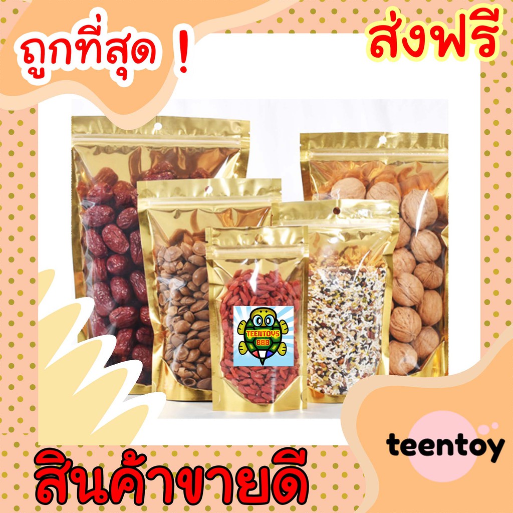 [ส่งด่วน] ถุงซิปทอง หน้าใส/หลังทอง แพคละ 50ใบ ถุงฟอยด์ ถั่วตราเต่า
