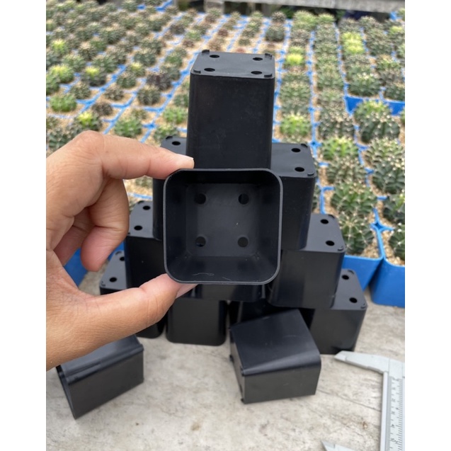 *ขั้นต่ำ 10 ใบ*กระถางพลาสติกสีดำและฟ้า ขนาด2นิ้ว กระถางแคคตัส