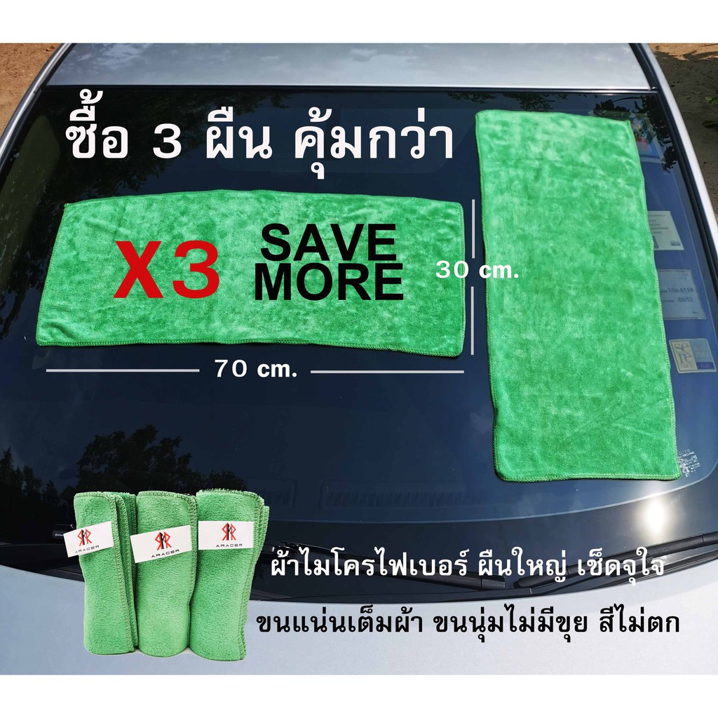 PACK 3 ผืน ผ้าไมโครไฟเบอร์อย่างดี หนานุ่ม เช็ดได้ไรรอยขนแมวเช็ดเก็บฝุ่นได้ดี ขนาด 70x30 cm. 400GSM.
