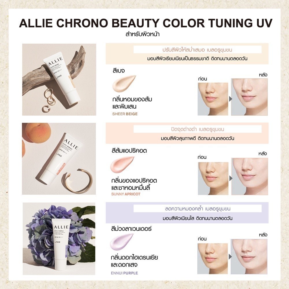 เจลกันแดด ALLIE เมคอัพเบสม่วง CHRONO BEAUTY COLOR TUNING UV ENNUI PURPLE SPF50+ PA++++ ลดความหมองคล้ำ ขนาด 40 กรัม