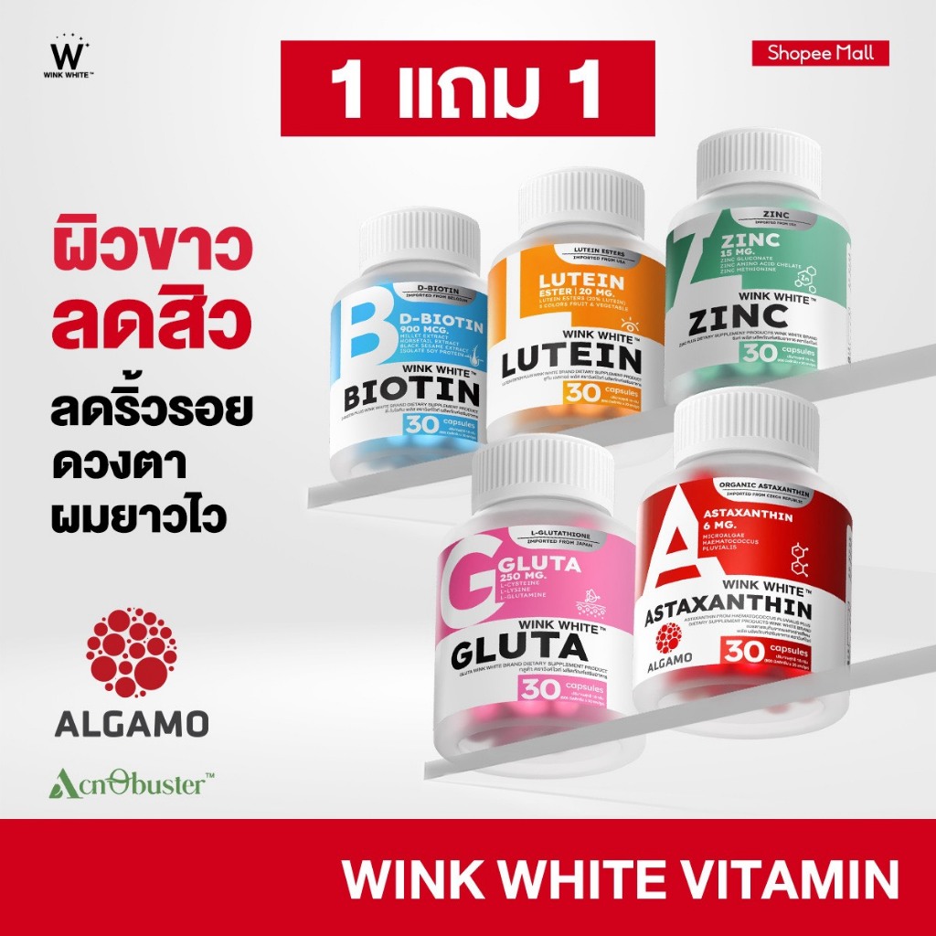 [วิตามิน] WINK WHITE วิตามิน 5 สูตร ผิวขาวใส ลดสิว ลดรอยดำ รอยแดง ชะ ลอวัย บำรุงเส้นผม บำรุงดวงตา