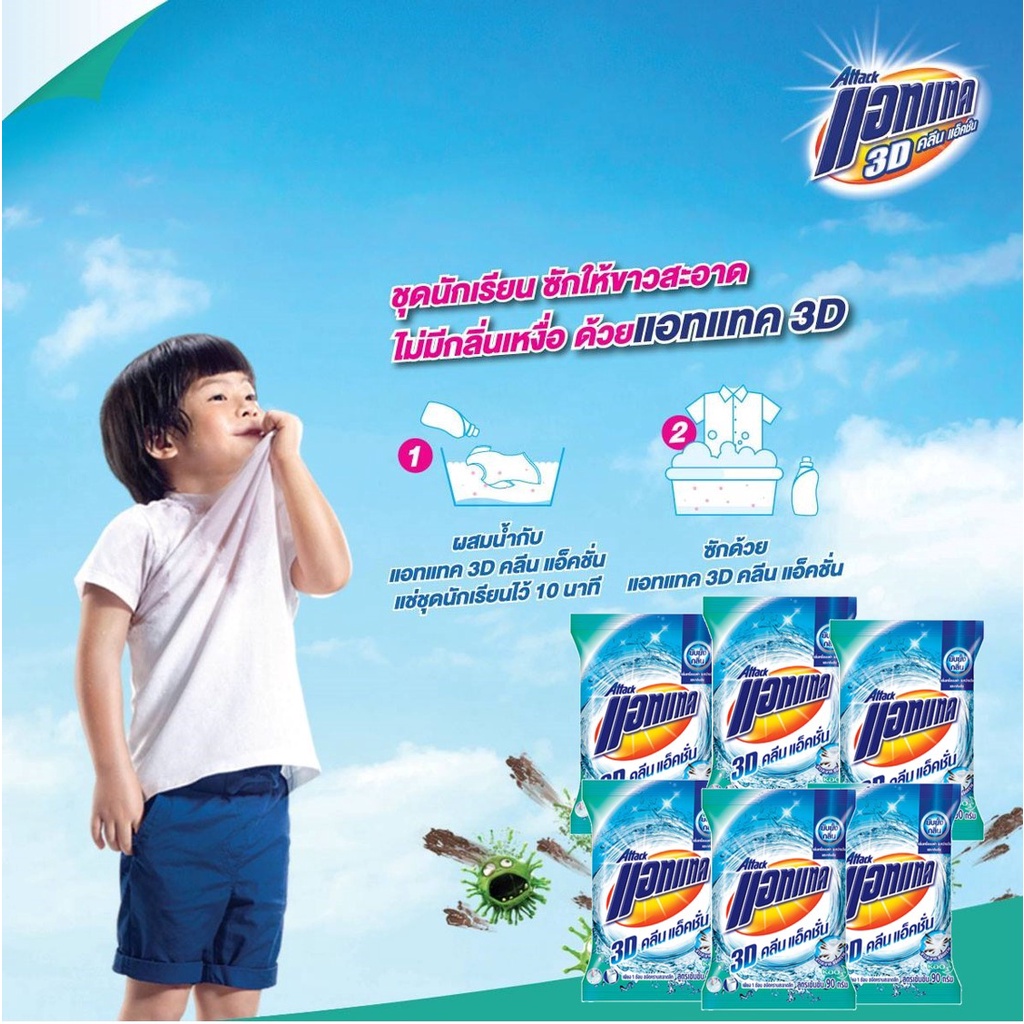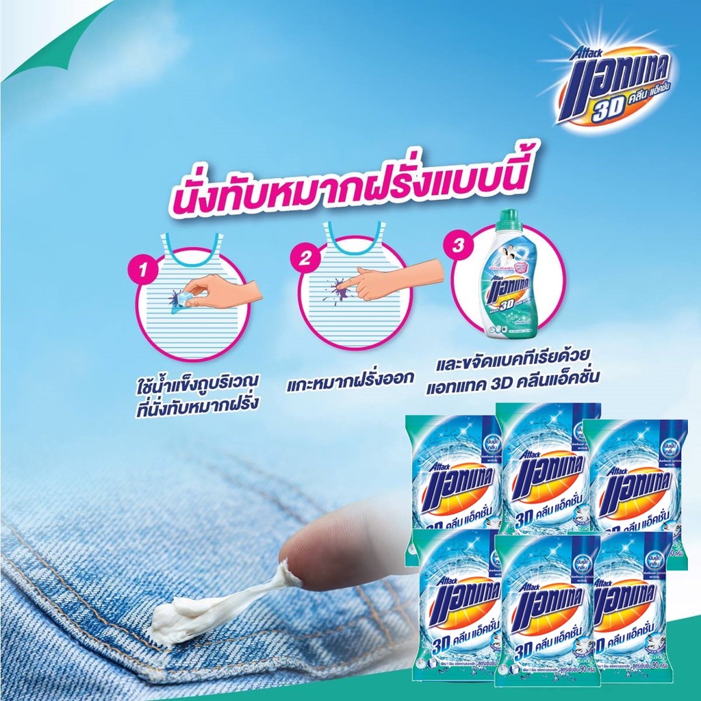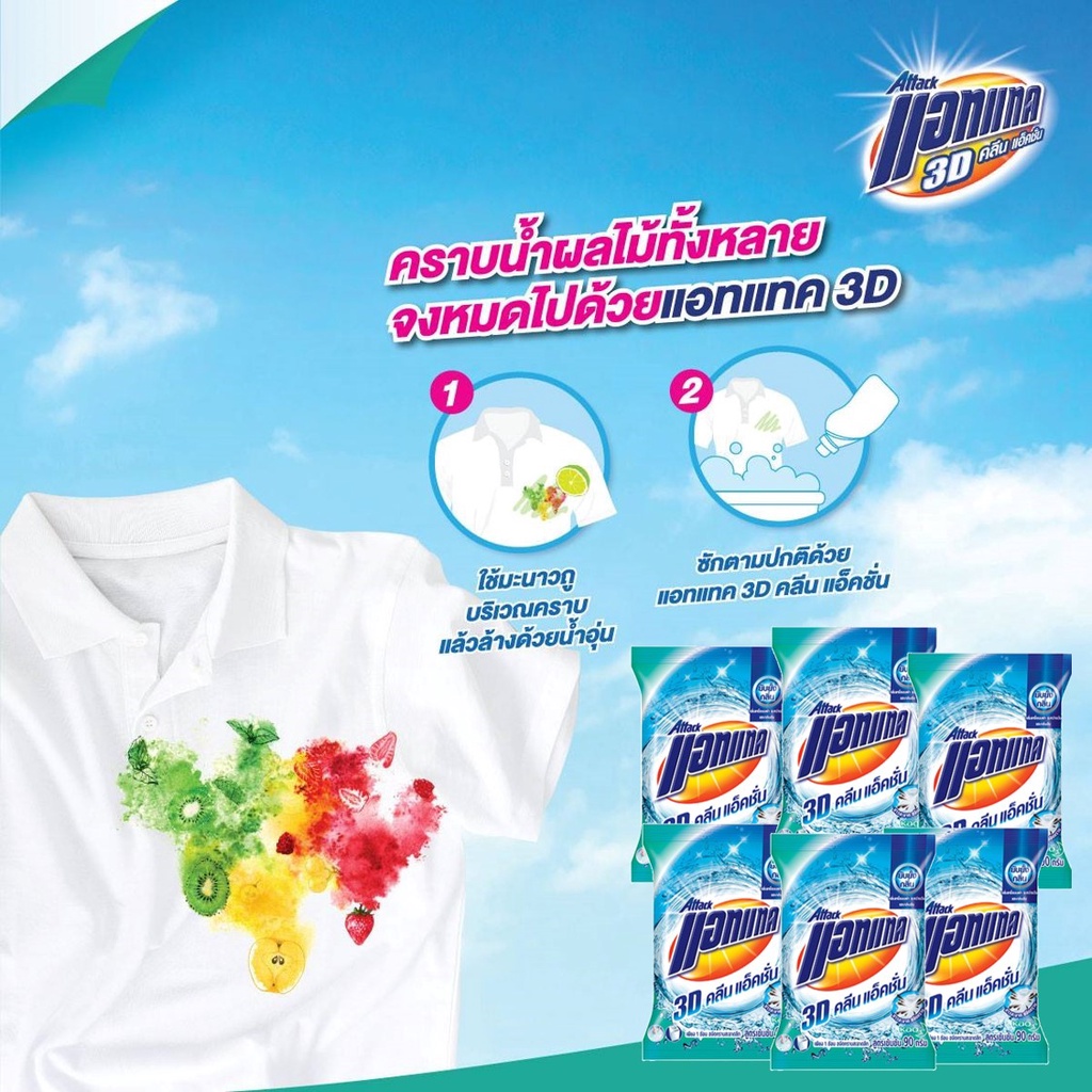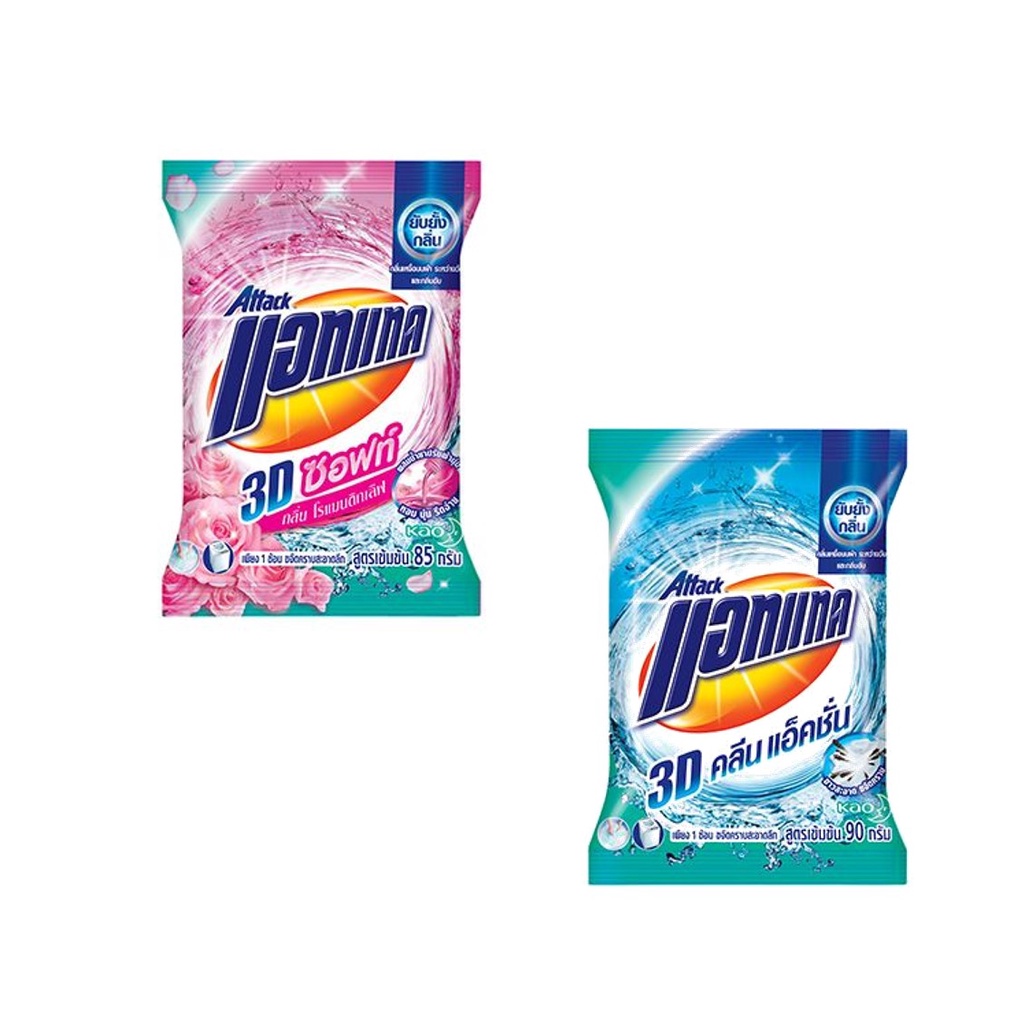 【🚚 ส่งฟรี !!! ขั้นต่ำ ฿99】🔥 ผงซักฟอกสูตรเข้มข้น แอทแทค Attack ทรีดี จำนวน 1 ถุง