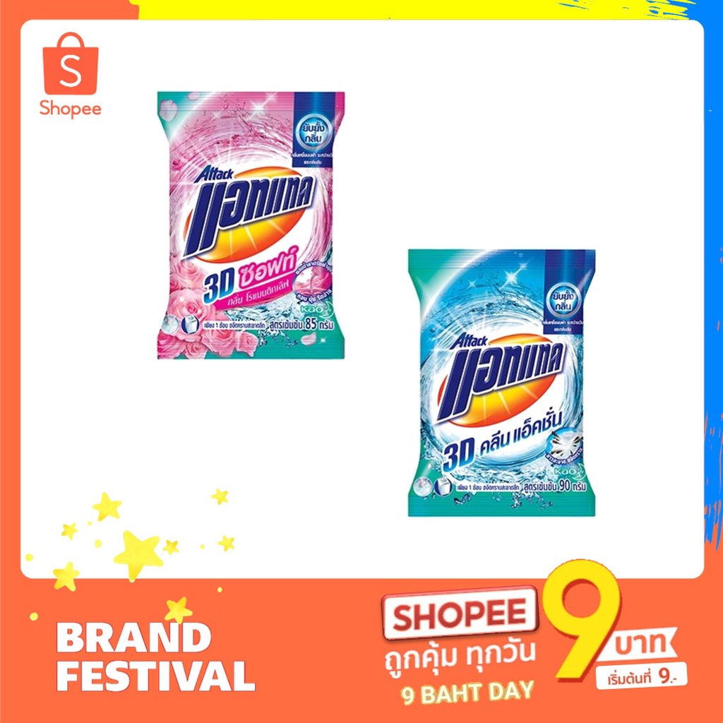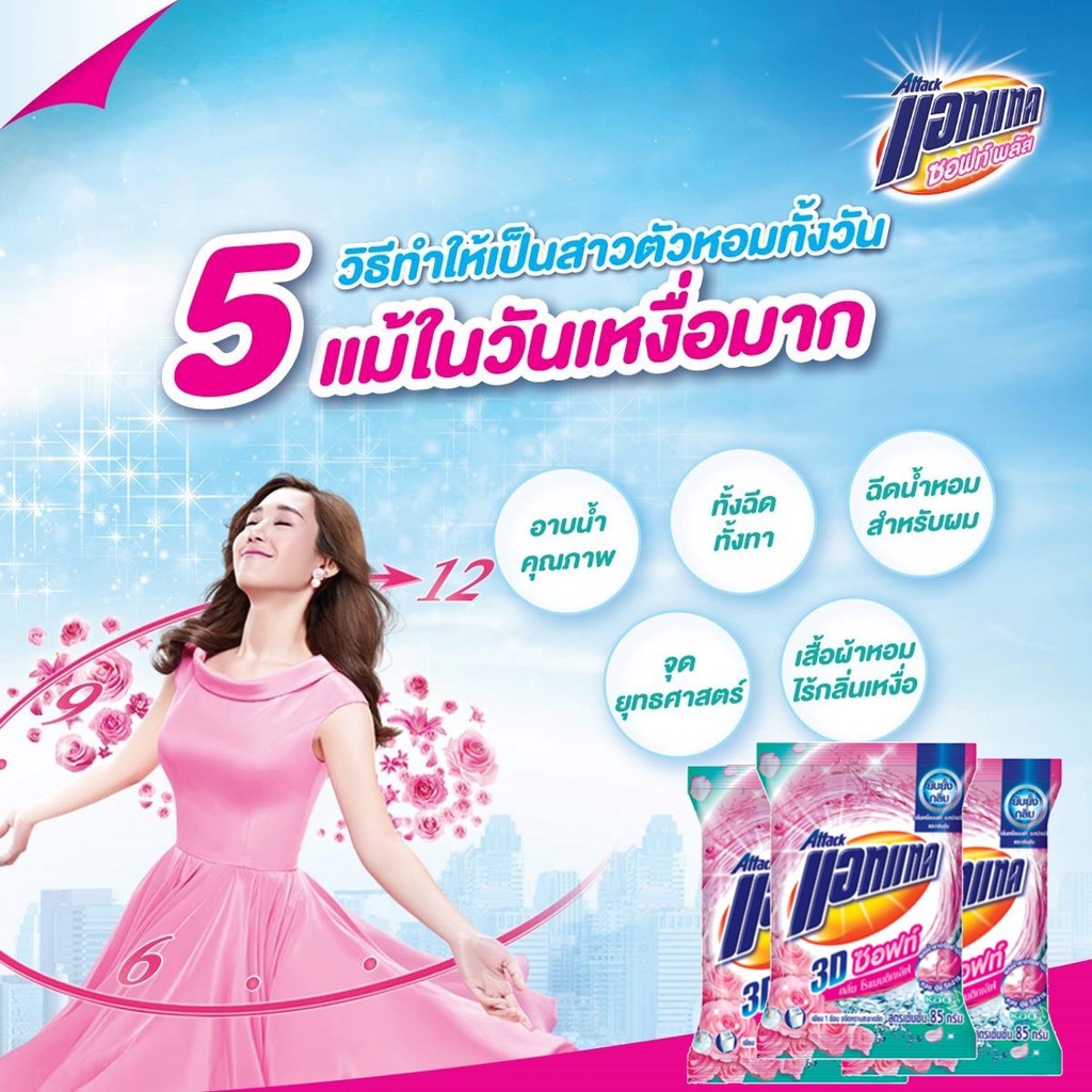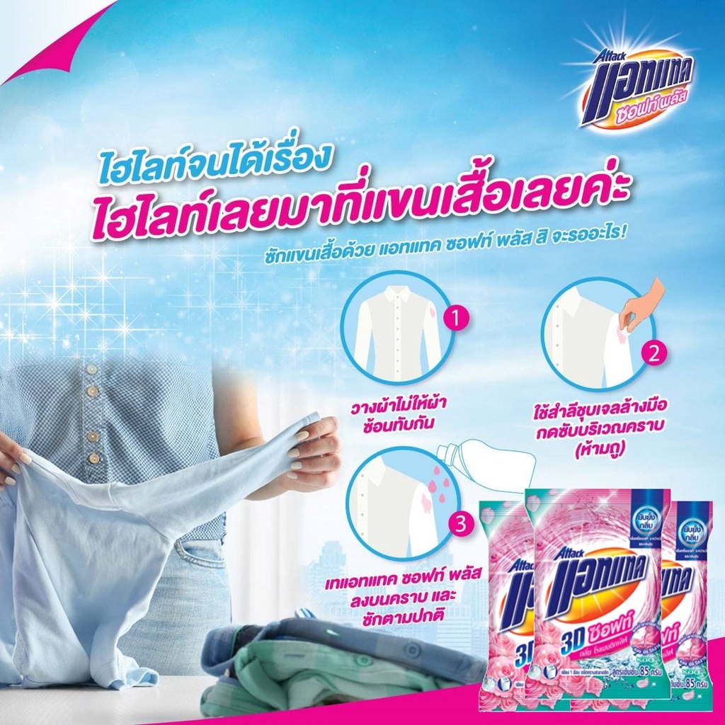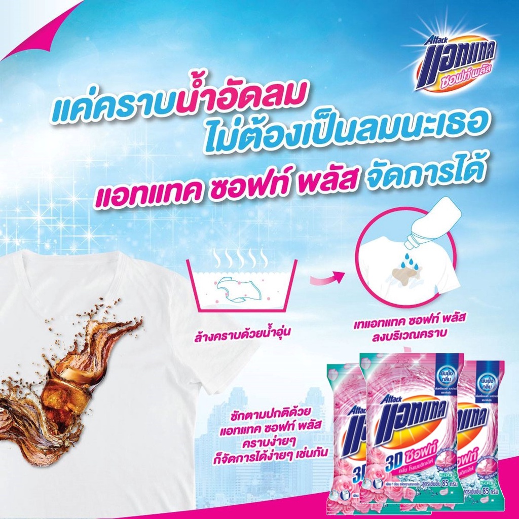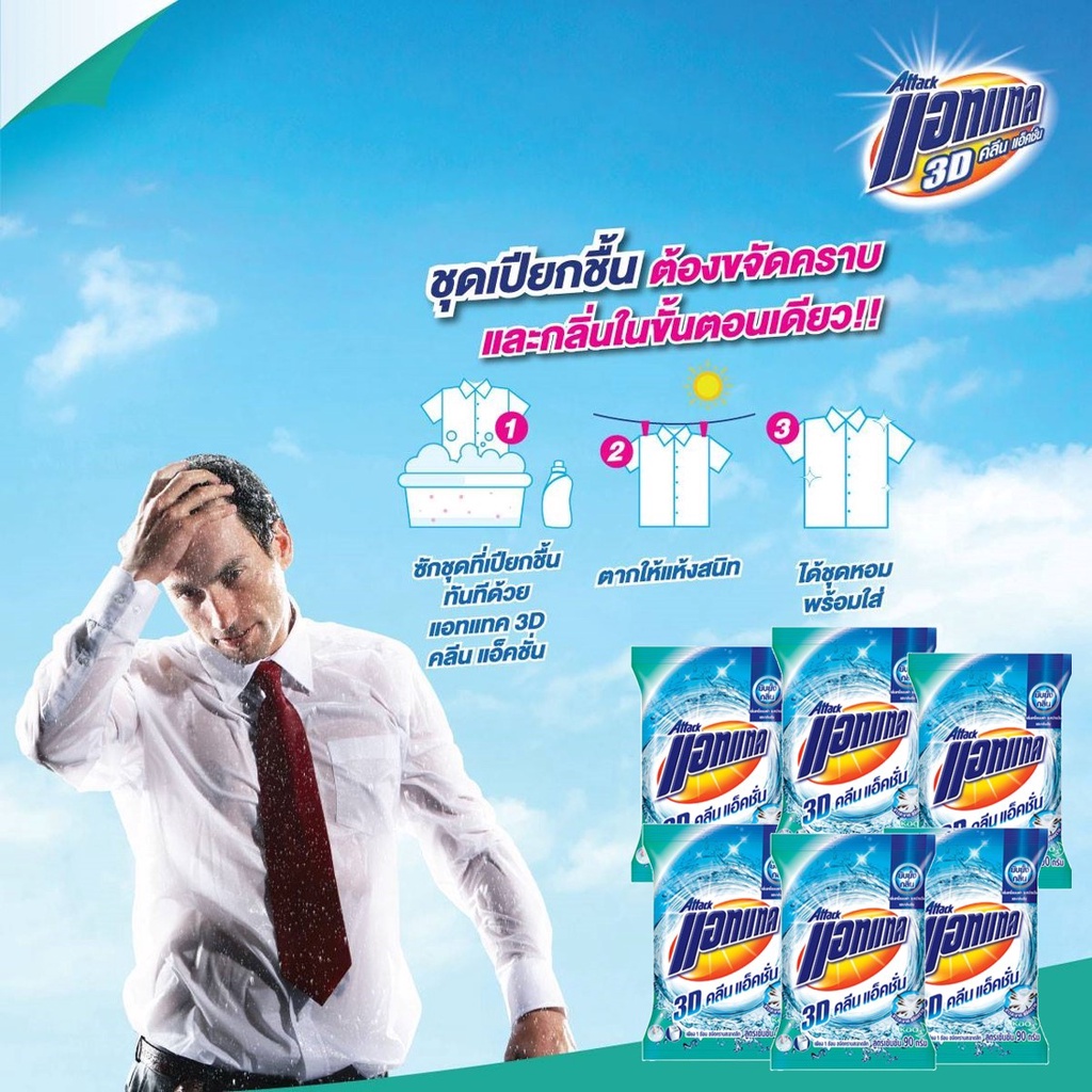 【🚚 ส่งฟรี !!! ขั้นต่ำ ฿99】🔥 ผงซักฟอกสูตรเข้มข้น แอทแทค Attack ทรีดี จำนวน 1 ถุง