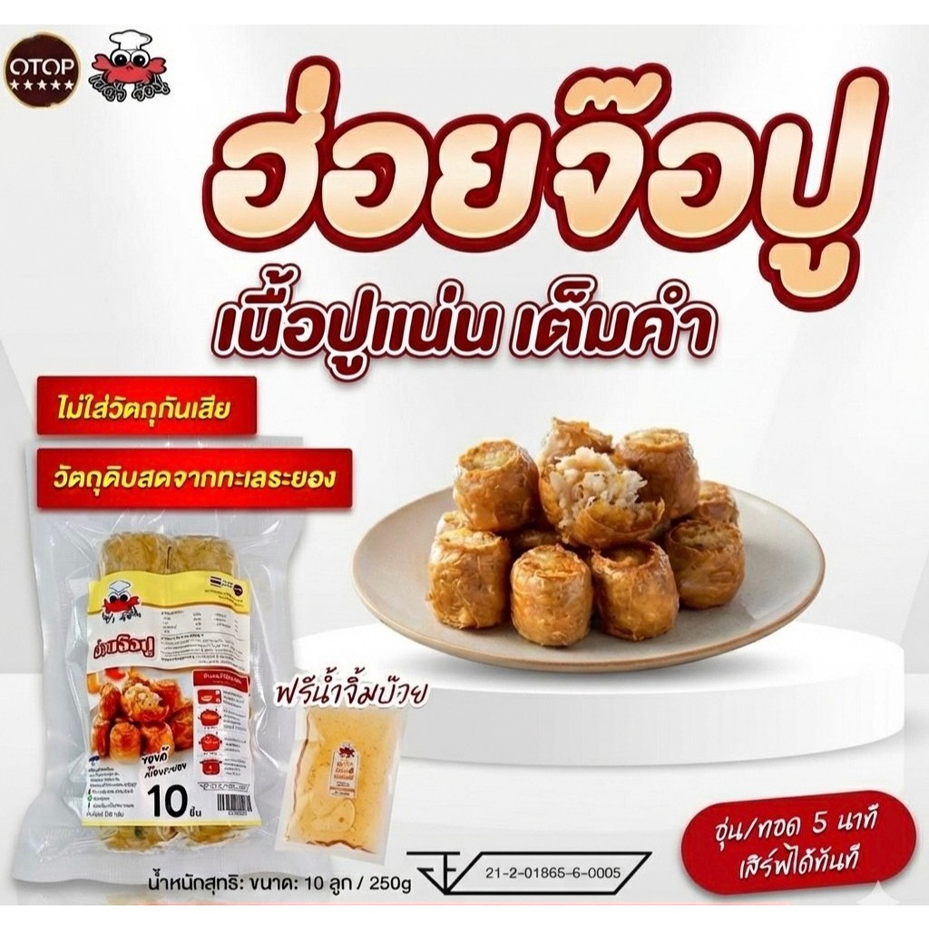 [เมญ่าจ๊อปู] หอยจ๊อปูไส้ทะลัก 10 ลูก (ยังไม่ทอด) เนื้ออกปูม้า + หมูสับ | OTOP 5 ดาว ระยอง | ทอดกรอบง่าย เก็บฟรีซ 1 ปี