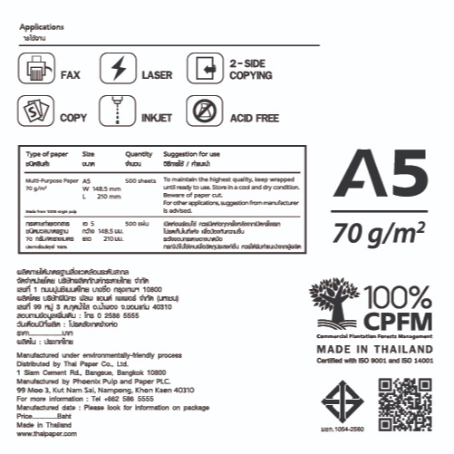 [ส่งฟรี!]Supreme กระดาษถ่ายเอกสาร 70 แกรม A5 บรรจุ 10 รีม