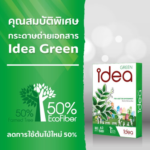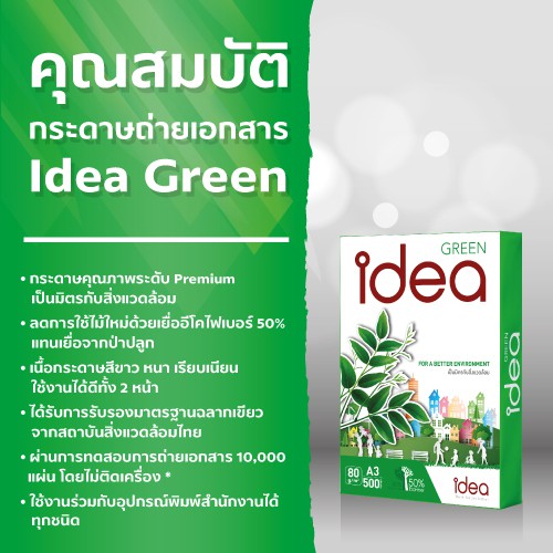 [ส่งฟรี!] Idea Green กระดาษถ่ายเอกสาร 80 แกรม A3 บรรจุ 5 รีม