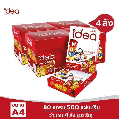 [ส่งฟรี!] Idea Work กระดาษถ่ายเอกสาร 80 แกรม A4 จำนวน 4 ลัง