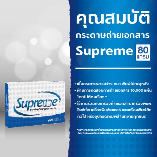 [ส่งฟรี!] Supreme กระดาษถ่ายเอกสาร 80 แกรม A4 จำนวน 4 ลัง