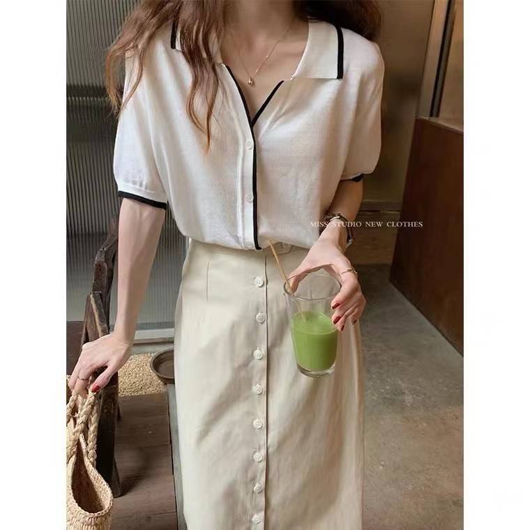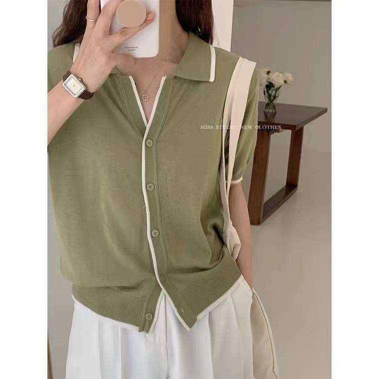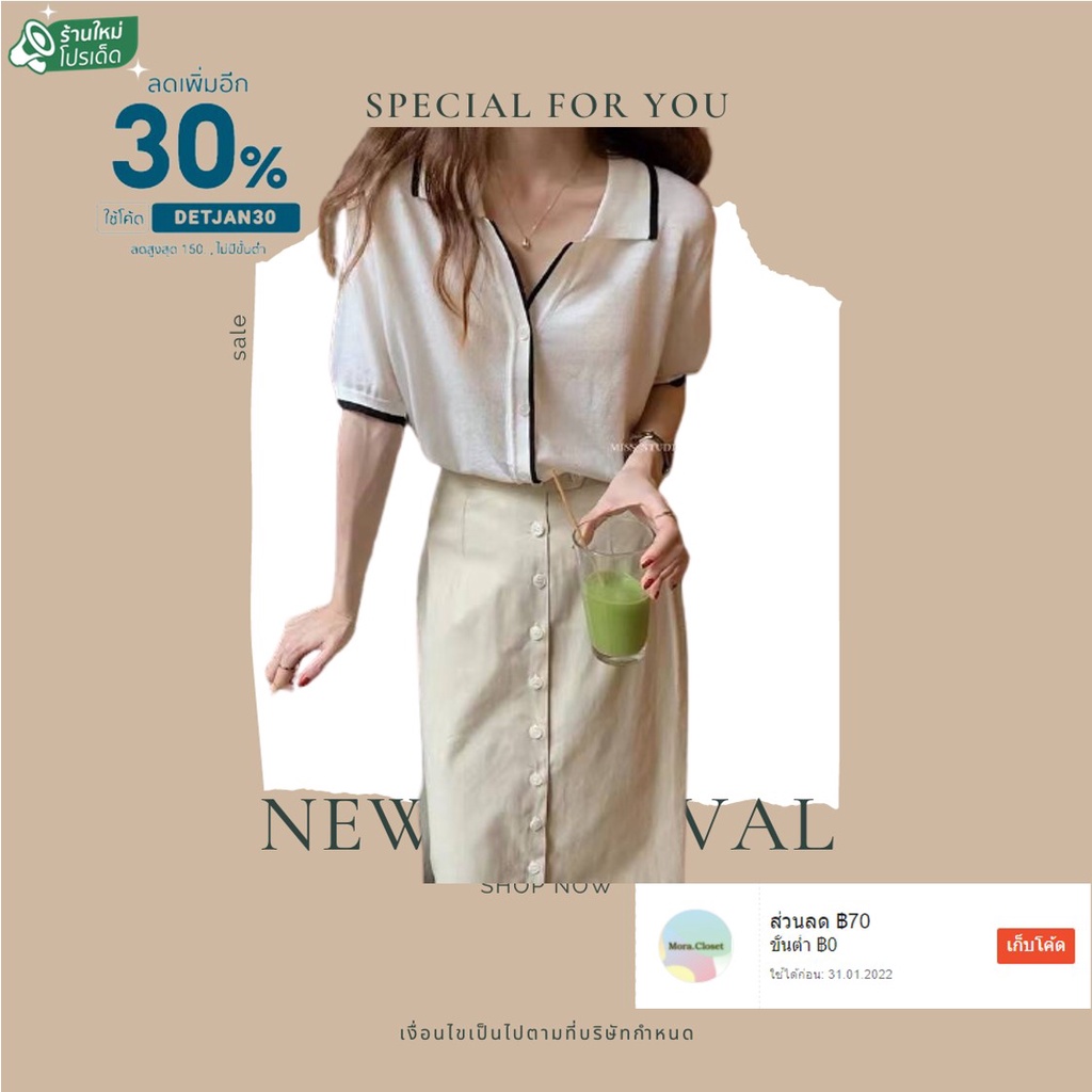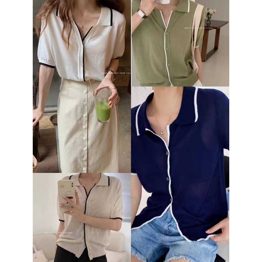 เสื้อเชิ้ตคอปกสีพาสเทลตัดขอบ ใส่ได้ทุกโอกาส มี 3 สี กรม/เขียว/ครีม