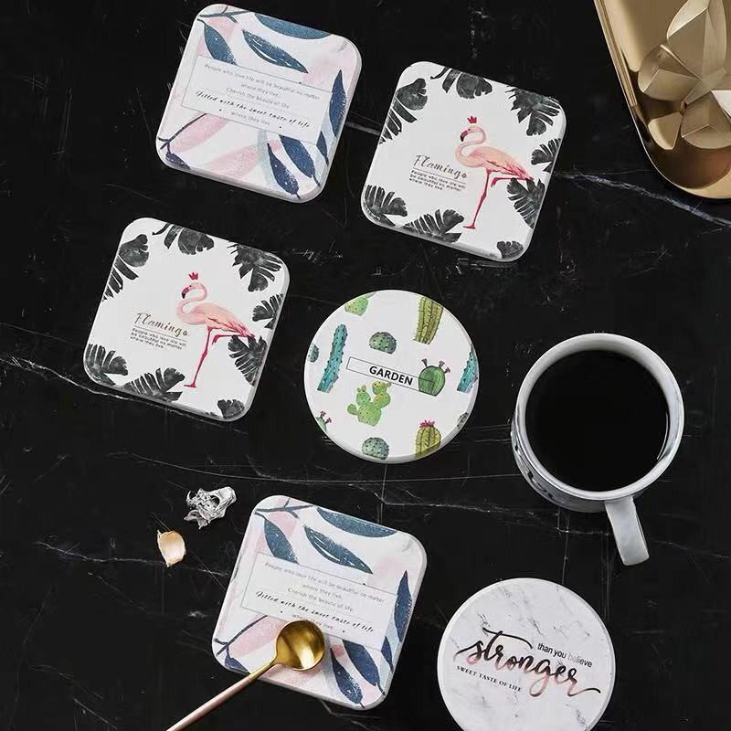 แผ่นหินรองแก้ว diatomite พร้อมกล่องสวยงาม ที่รองแก้วซับน้ำ ที่วางแก้ว