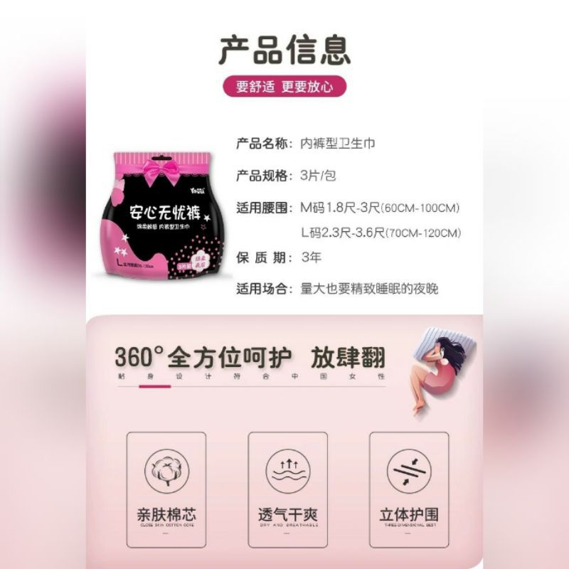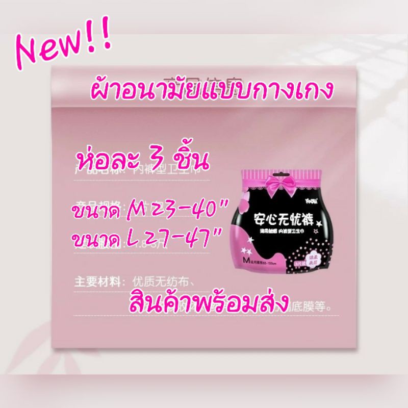 มีโค้ดลด ! ห่อ3ชิ้น มีไซส์เล็ก-ใหญ่ 50 นิ้ว สุดคุ้ม ผ้าอนามัยแบบกางเกง Cottonไซส์ M,L-XL ,XXL ราคาดี พร้อมส่ง ผ้าอนามัย
