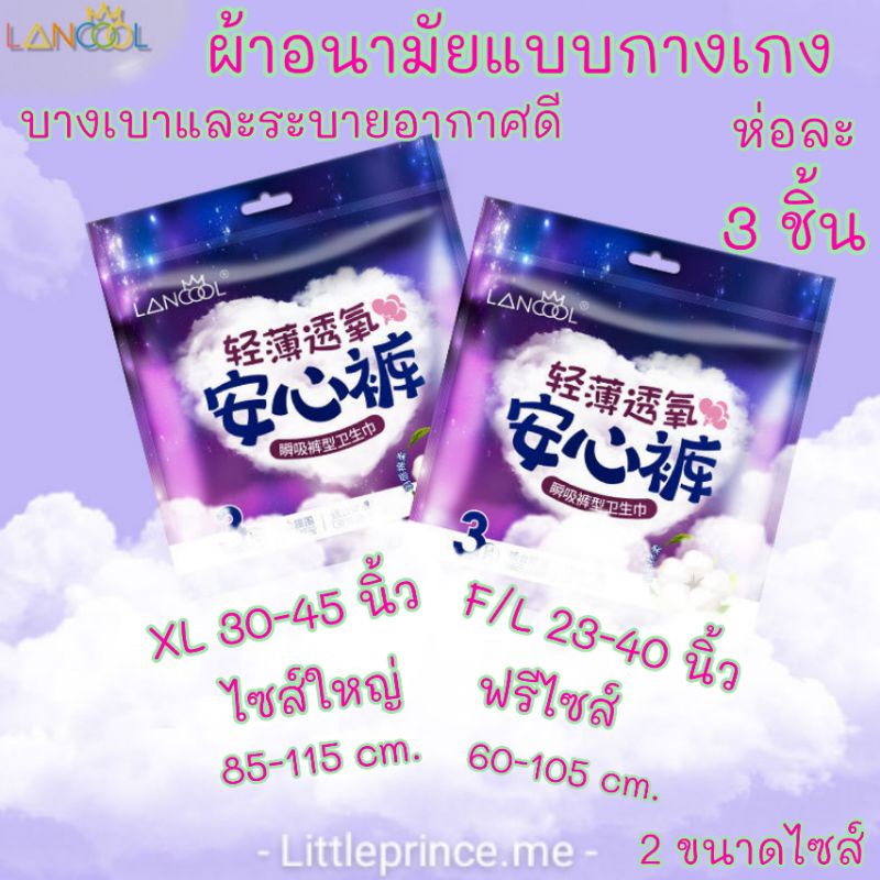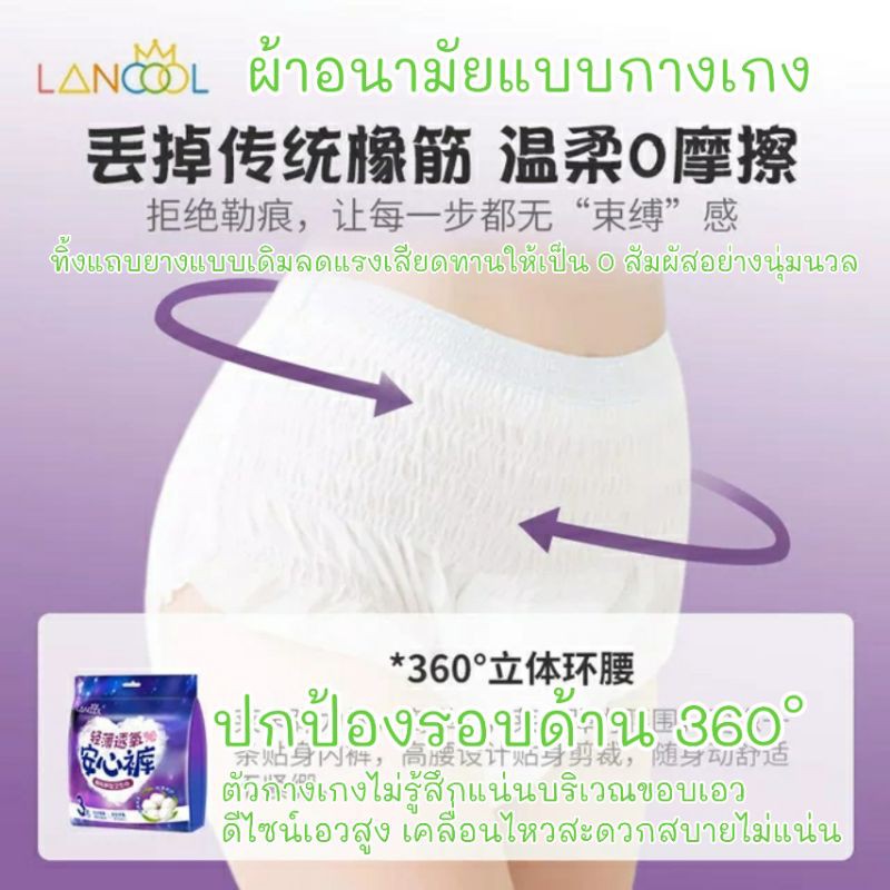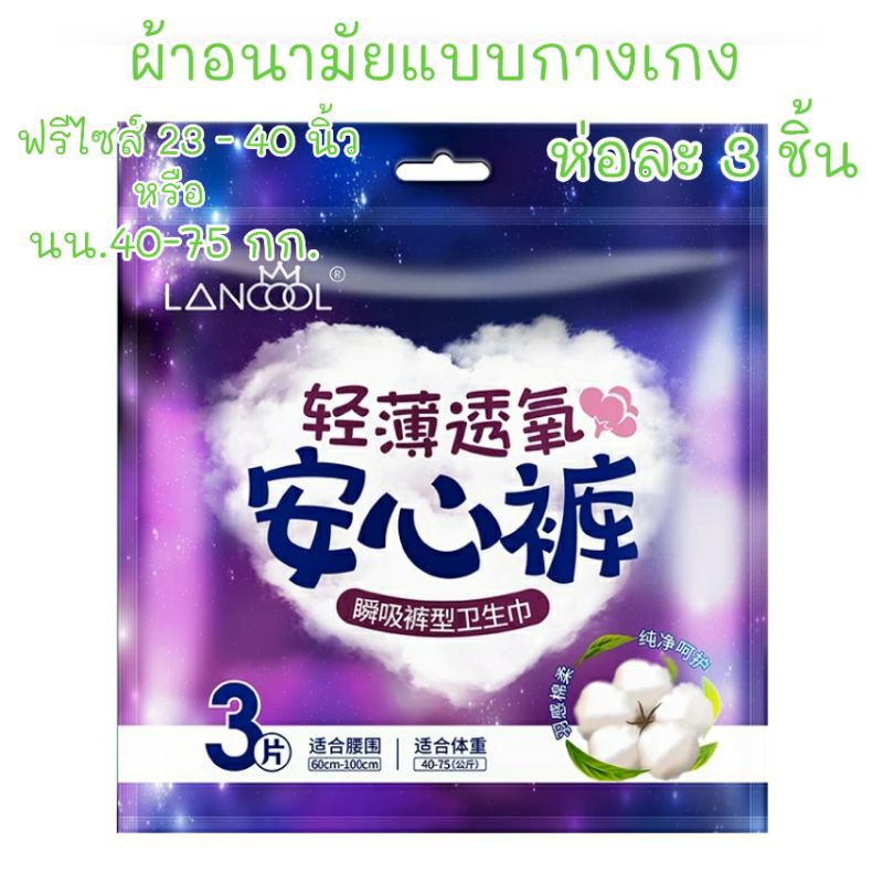 WoWห่อละ 3 ชิ้น ผ้าอนามัยแบบกางเกง Organic สินค้าขายดี Lancool ฟรีไซส์ L และXL รุ่นบางเบาระบายอากาศดี ผ้าอนามัย พร้อมส่ง
