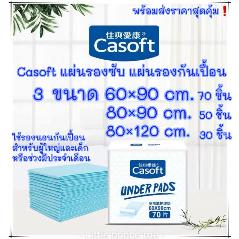 โค้ดลดได้ พร้อมส่ง❗Casoft แผ่นรองซับ แผ่นรองกันเปื้อน ผืนใหญ่ 3 ขนาด 60-120cm ห่อใหญ่ ใช้รองกันเปื้อนสำหรับผู้ใหญ่ /เด็ก