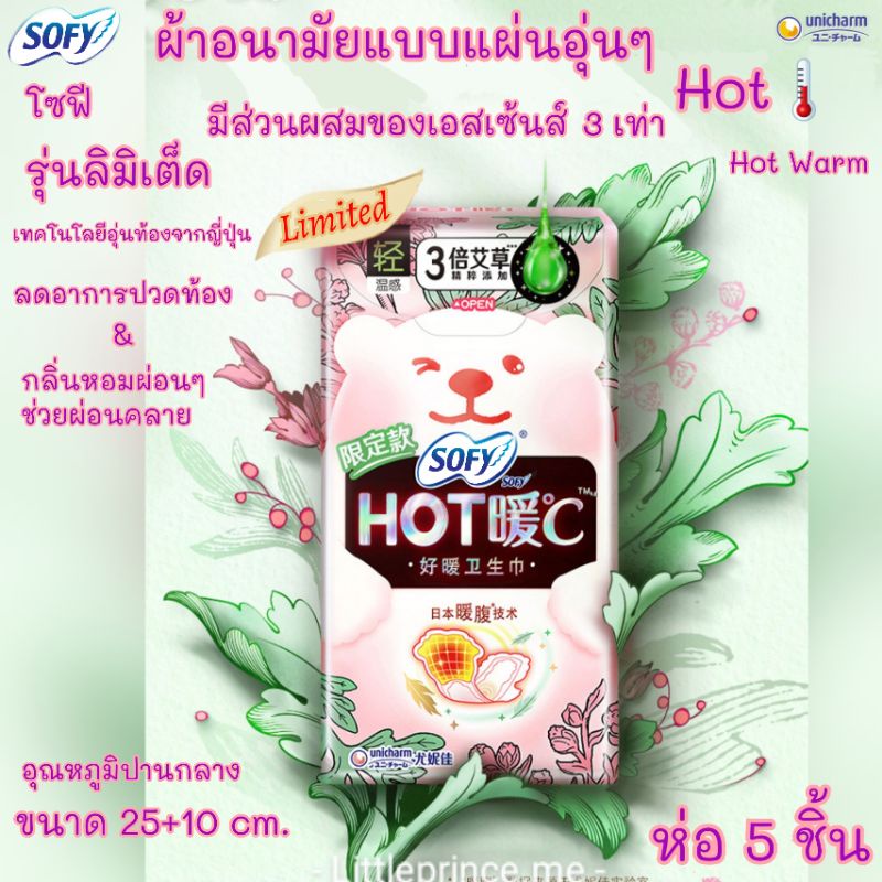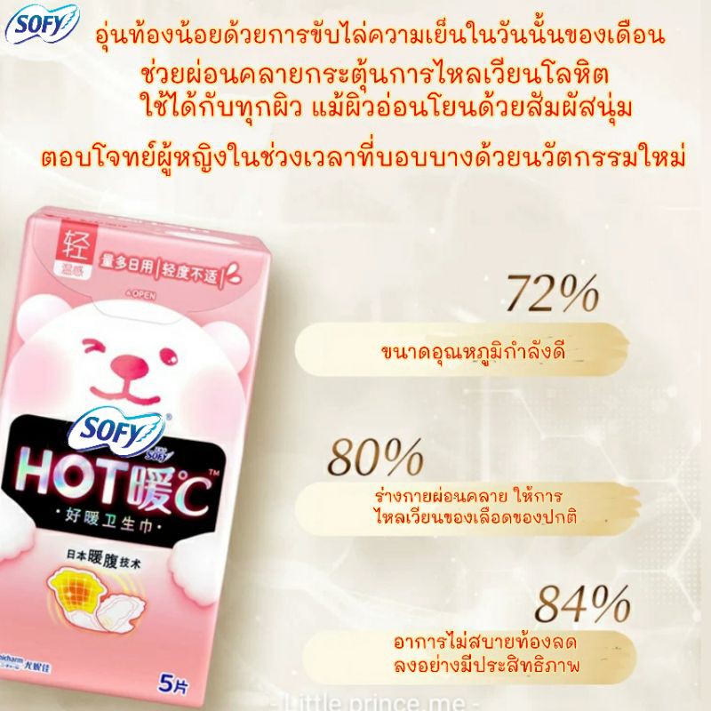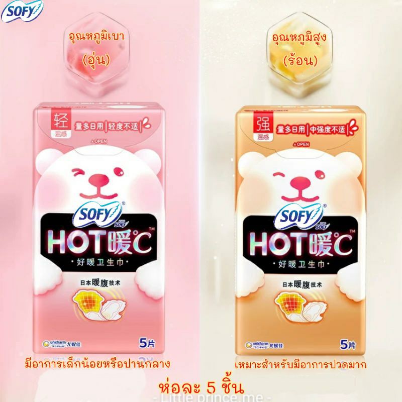 SOFY โซฟี ผ้าอนามัยแบบแผ่น มีแผ่นร้อนอุ่นๆช่วยลดและบรรเทาอาการปวดท้อง ห่อ5ชิ้น ใช้ได้แม้ผิวที่แพ้ง่าย พร้อมส่ง