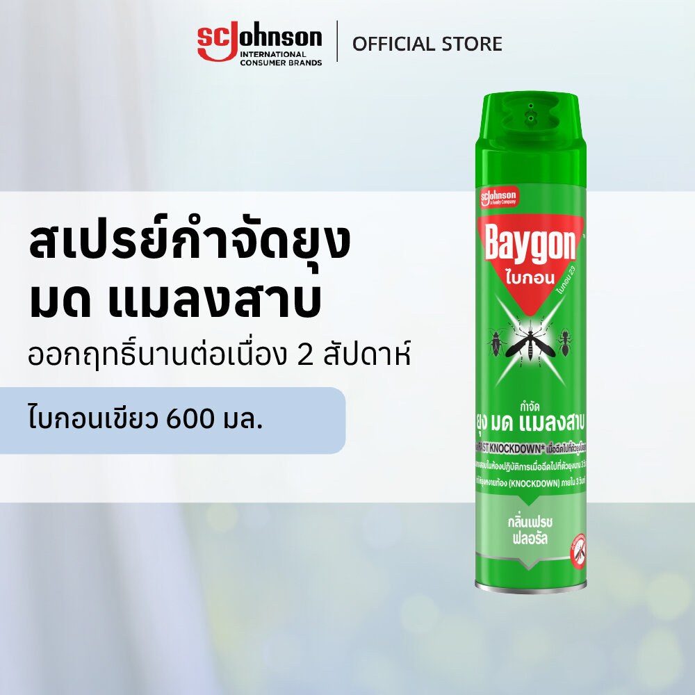 ไบกอนเขียว สเปรย์กำจัดยุง ยาฉีดยุง มด แมลงสาบ 600 มล. Baygon Multi Insect Killer Aeresol Spray 600ml