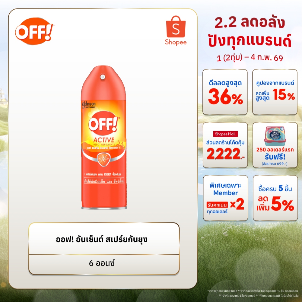 (ฟรี! Sanrio Tote Bag เมื่อซื้อครบ 3 ชิ้น) ออฟ! อันเซ็นต์ สเปรย์กันยุง 6 ออนซ์