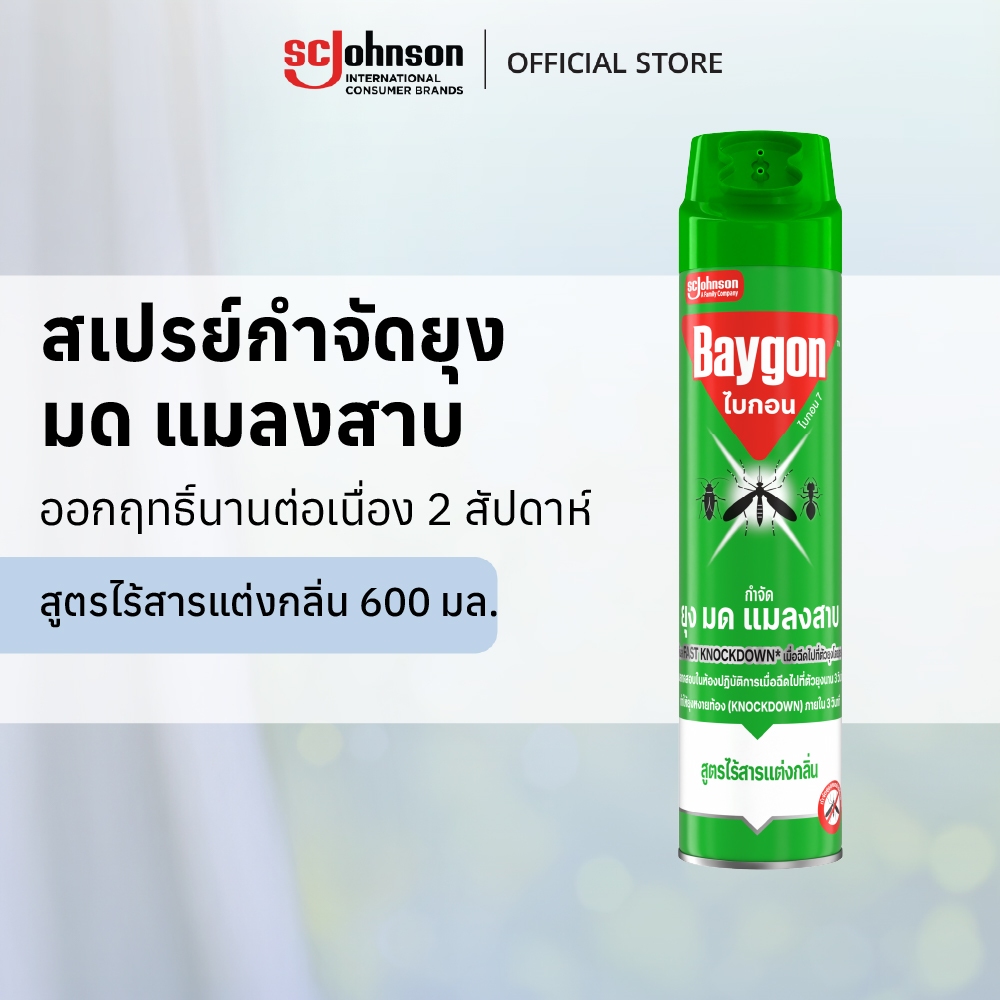 ไบกอนสเปรย์สูตรน้ำ กำจัดแมลงคลาน 600มล. Baygon Waterbase Crawling Insect Killer Aerosol Spray 600ml
