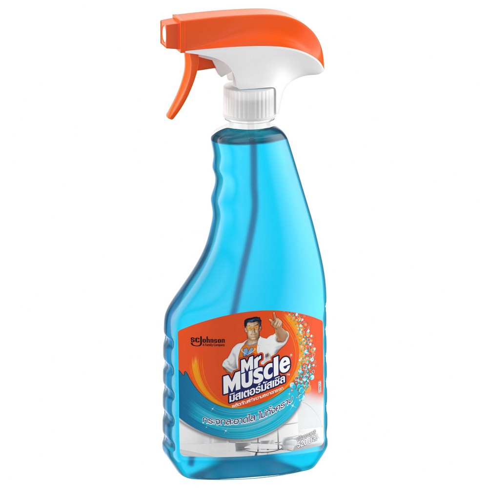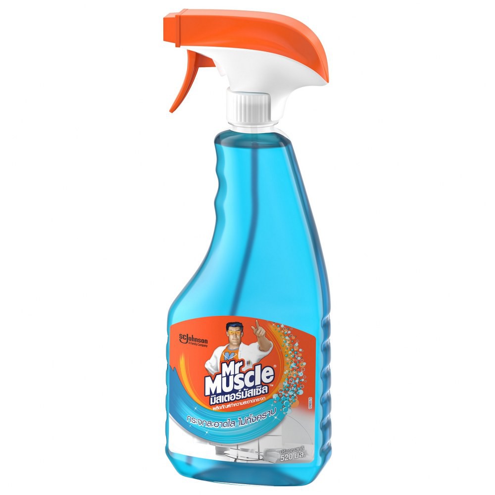 มิสเตอร์มัสเซิล น้ำยาเช็ดกระจก 520มล. สเปรย์ฟ้า Mr Muscle Glass Cleaner 520ml/12 TH