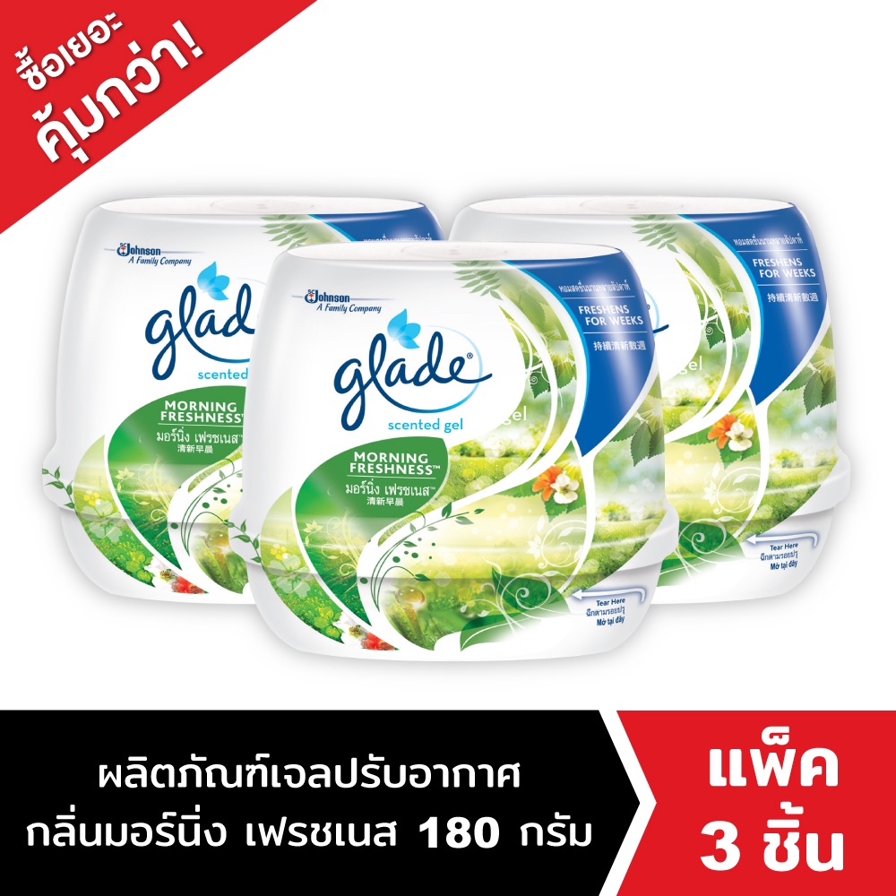 เกลดเซ็นท์เต็ด เจลหอมปรับอากาศ เจลดับกลิ่น กลิ่นมอร์นิ่ง เฟรชเนส 180 กรัม แพ็ค 3 Glade Scented Gel Air Freshener