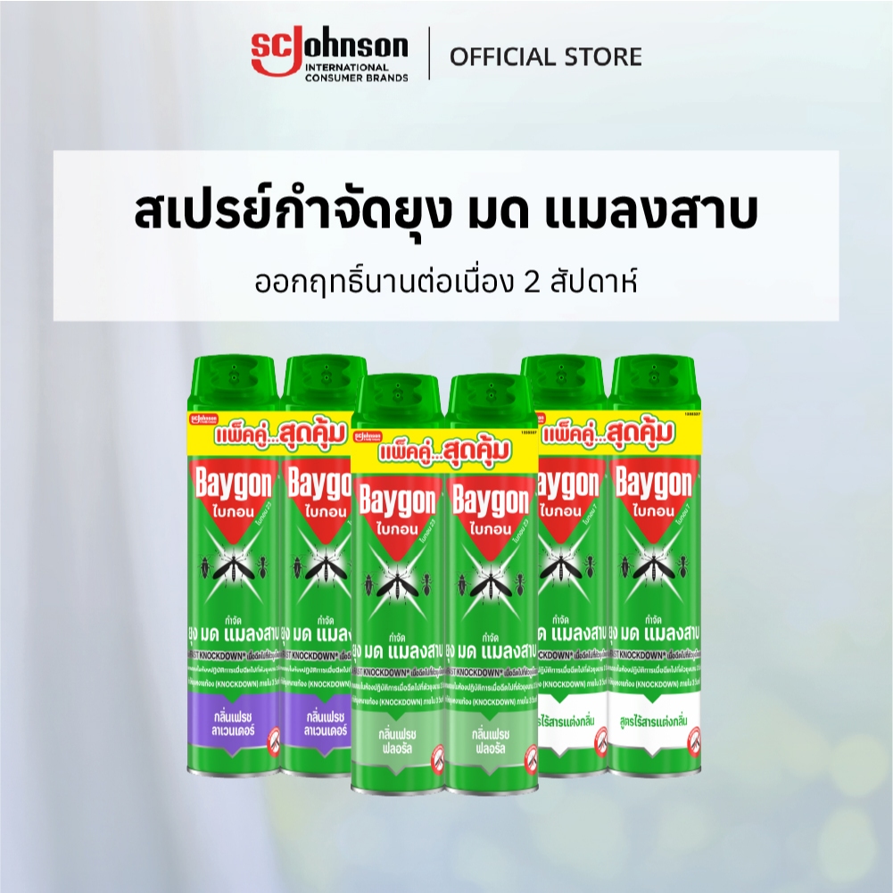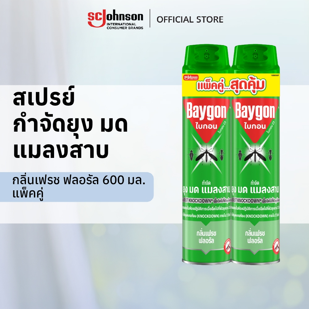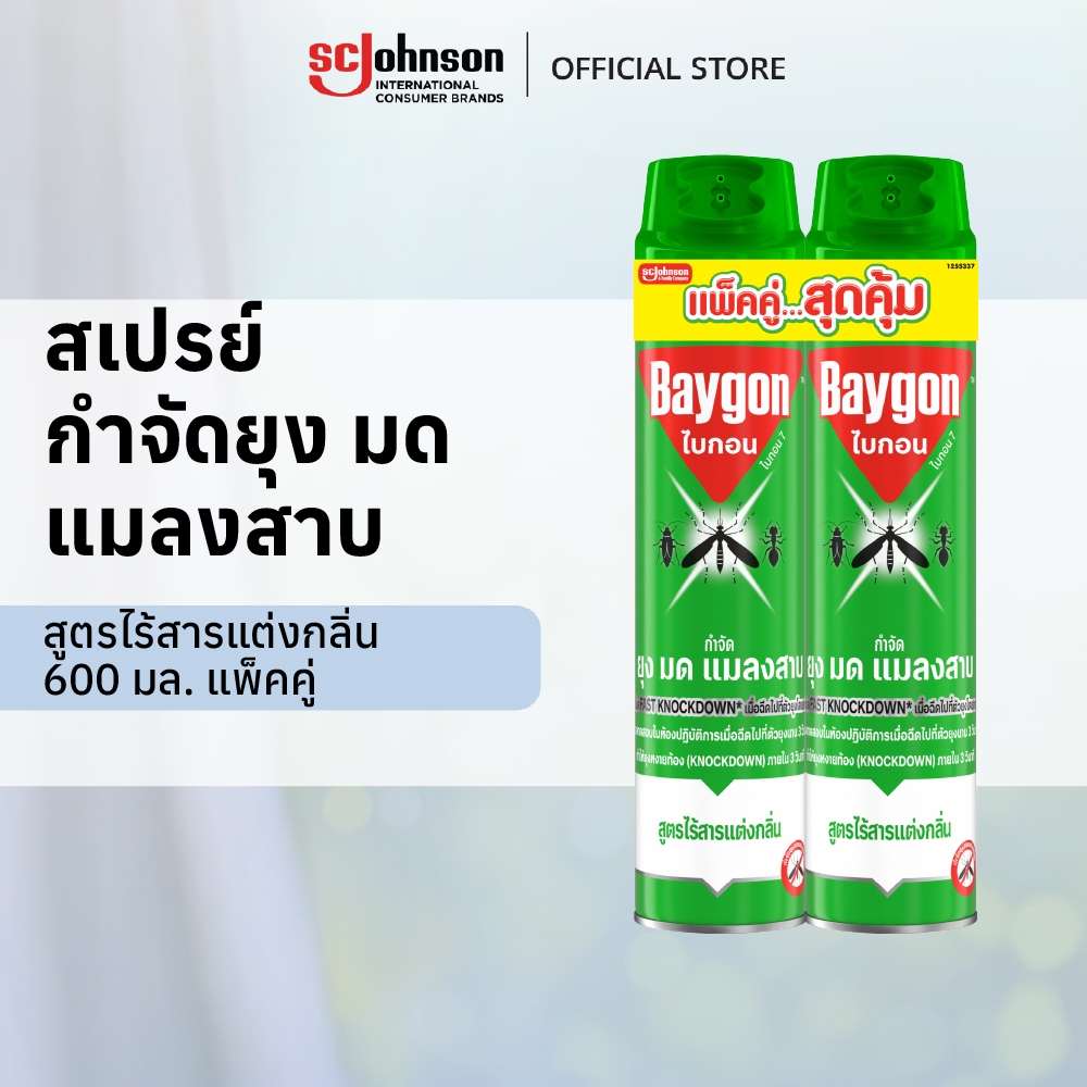 ไบกอนเขียว สเปรย์กำจัดยุง ยาฉีดยุง มด แมลงสาบ 600 มล. แพ็คคู่ (เลือกกลิ่นได้)