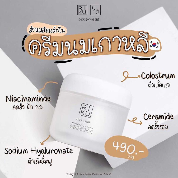 (ครีมหน้าเด้ง) ส่งไว ส่งทุกวัน - RIKU ครีมลดฝ้า กระ จุดด่างดำ ครีมนมเกาหลี ปลอดภัย มี อย ผลิตจากประเทศเกาหลี