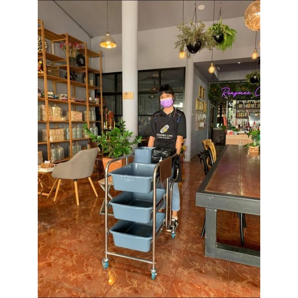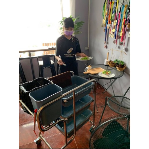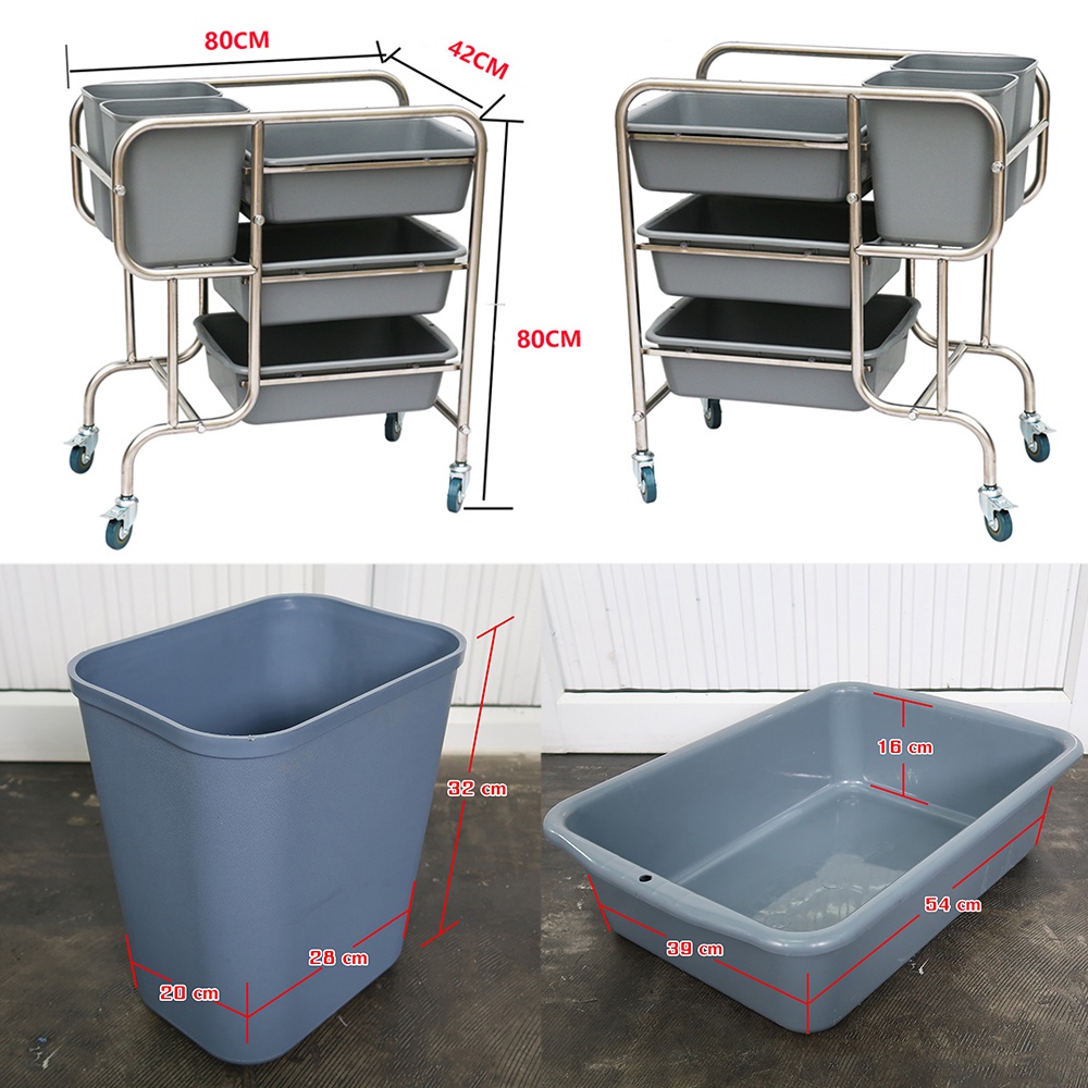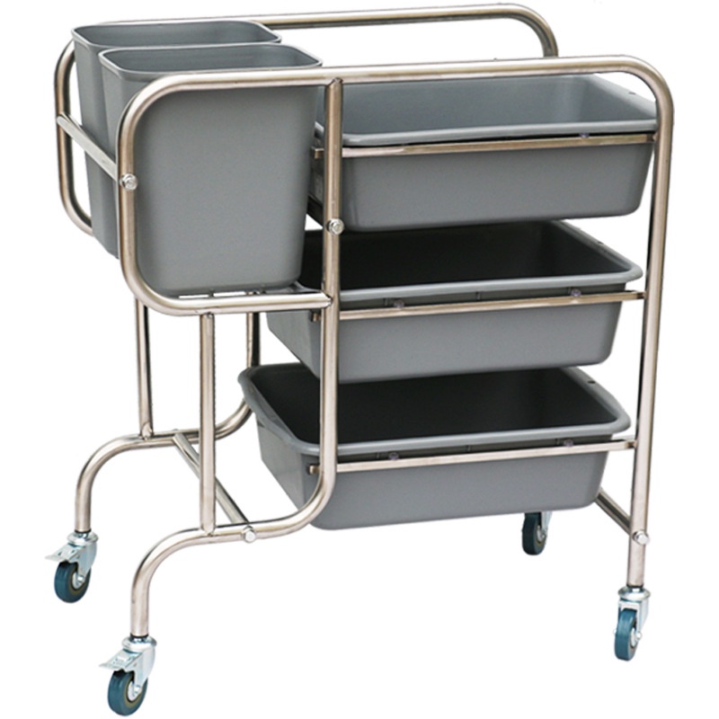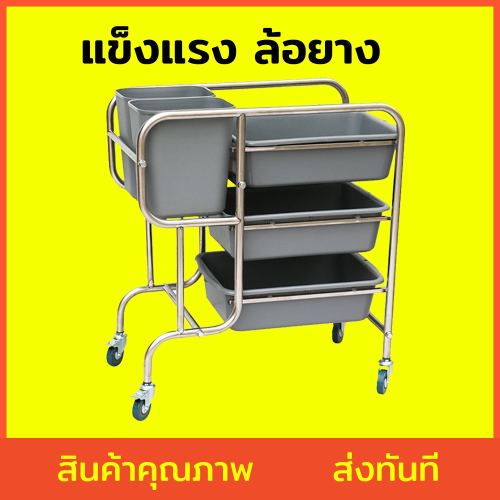 รถเข็นเก็บจาน "เก็บเศษอาหาร" แข็งแรง ล้อยาง สแตนเลส