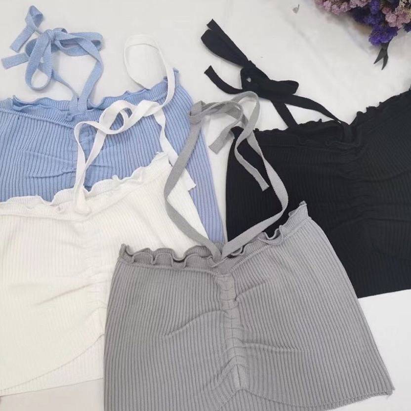SALABO(พร้อมส่ง)💖เกาะอกไหมพรม💖 สุดฮิต แต่งเชือกผูกโบว์เก๋ๆ เย็บกลางอกเซ็กซี่💖 #BX09