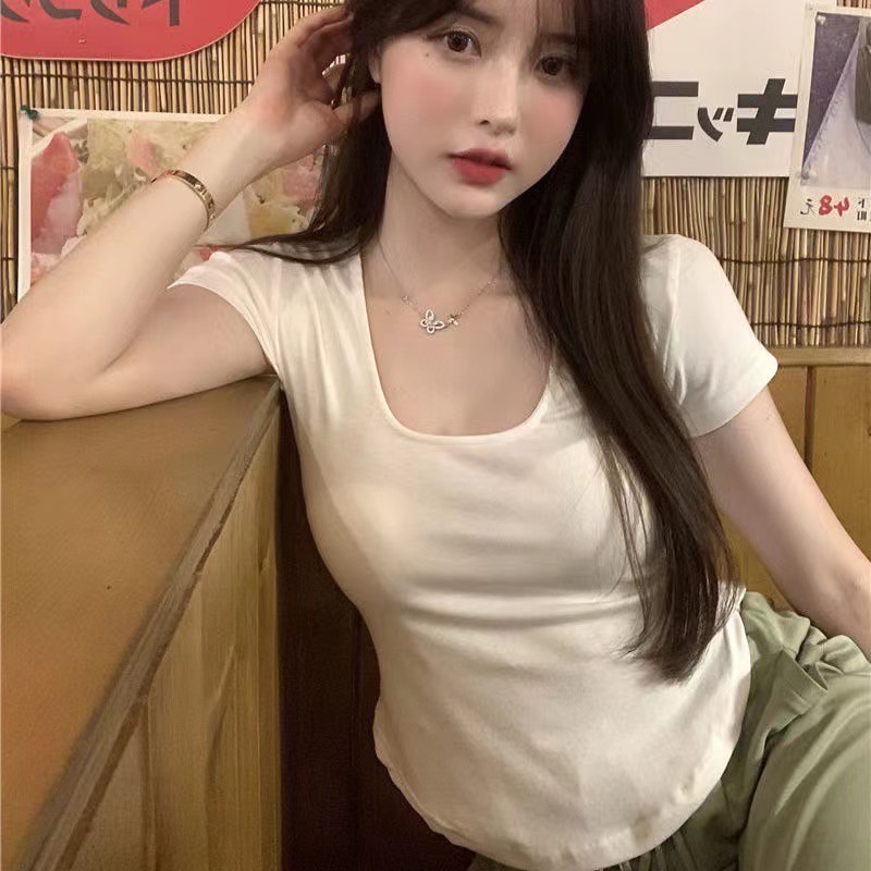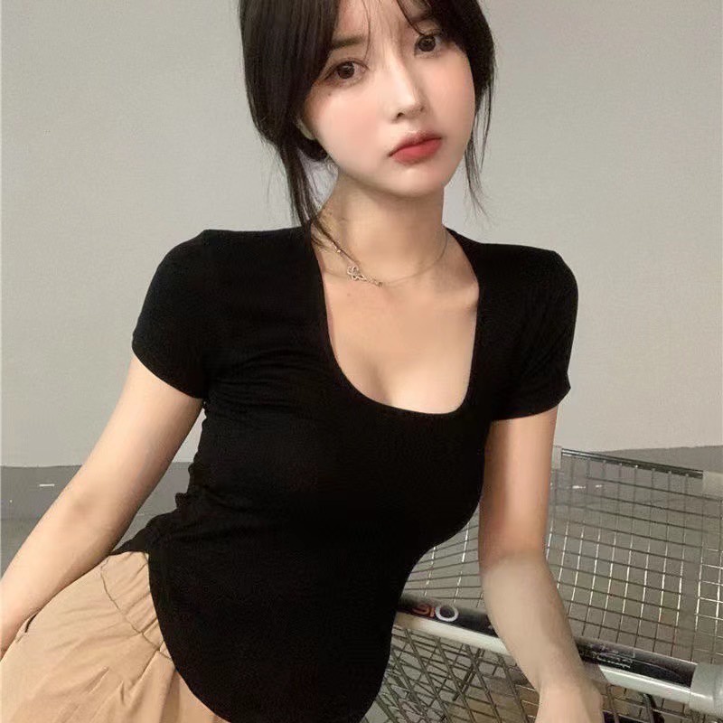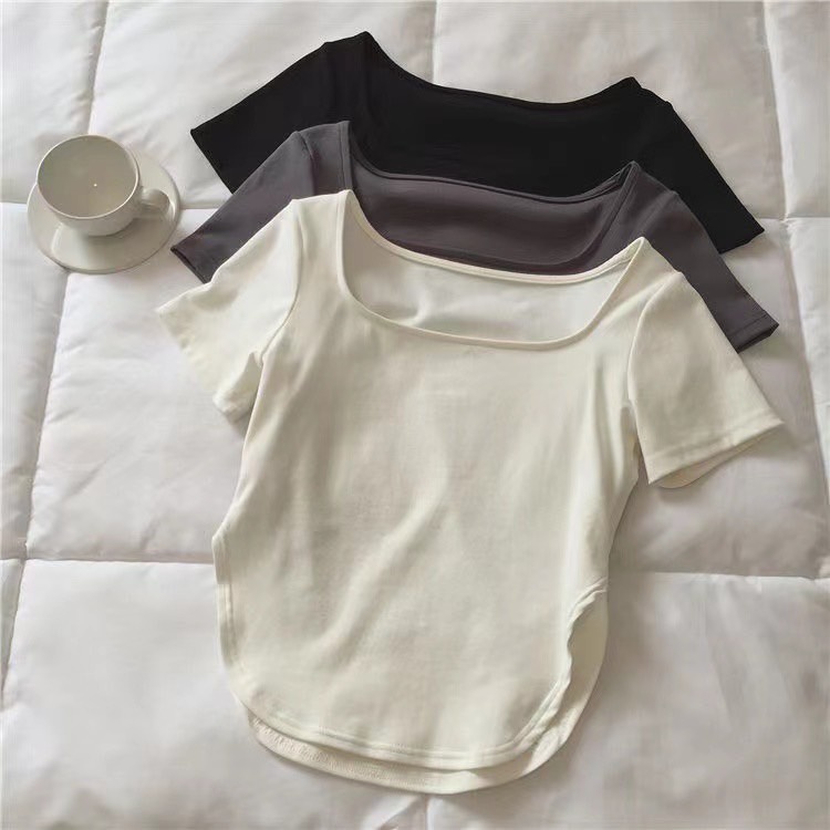 SALABO(พร้อมส่ง)🌷เสื้อรัดรูป คอกลม🌷 แต่งชายโค้ง สีพื้น แวกข้างนิดๆโชว์เซ็กซี่ ผ้านิ่มผ้ายืด🌷 #A4