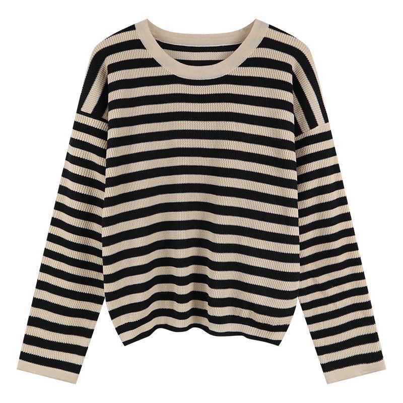 SALABO(พร้อมส่ง) เสื้อแขนยาว ลายทาง คอกลม ไหมพรมผ้าถักหนาๆ กันหนาว สีสวยๆ #J7